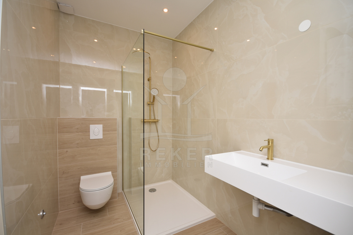 Der Eingangsbereich führt Sie direkt in den offenen Wohnraum: großzügig, hell und mit direktem Zugang zur überdachten Terrasse. Kochen, Essen und Wohnen laufen hier fließend ineinander. Drei Schlafzimmer bieten genügend Rückzugsmöglichkeiten. Zwei voll ausgestattete Bäder bringen Entlastung im Alltag. Besonders angenehm: Fußbodenheizung in den Wohn- und Badezimmern, steuerbar per WLAN-Thermostat. Die Böden: pflegeleichte Keramik in den Wohnräumen, warmer Vinyl in Holzoptik in den Schlafzimmern. Dank einbruchhemmender Türen, elektrischer Rollläden und moderner Videogegensprechanlage wohnen Sie nicht nur komfortabel, sondern auch sicher.