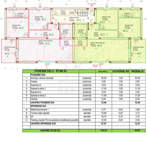 Die Erdgeschosswohnung umfasst 72,45 m² Wohnfläche. Sie bietet zwei Schlafzimmer und zwei Badezimmer. Ein Schlafzimmer hat ein eigenes Bad und erhöht so den Komfort. Hochwertige Keramik, moderne Sanitärausstattung, Fußbodenheizung, elektrische Rollläden und Klimaanlagen in allen Räumen runden das Gesamtbild ab.