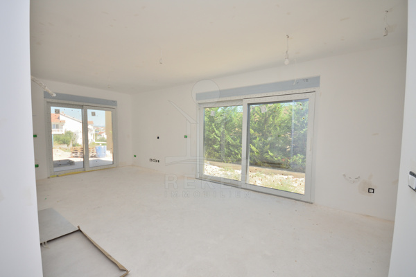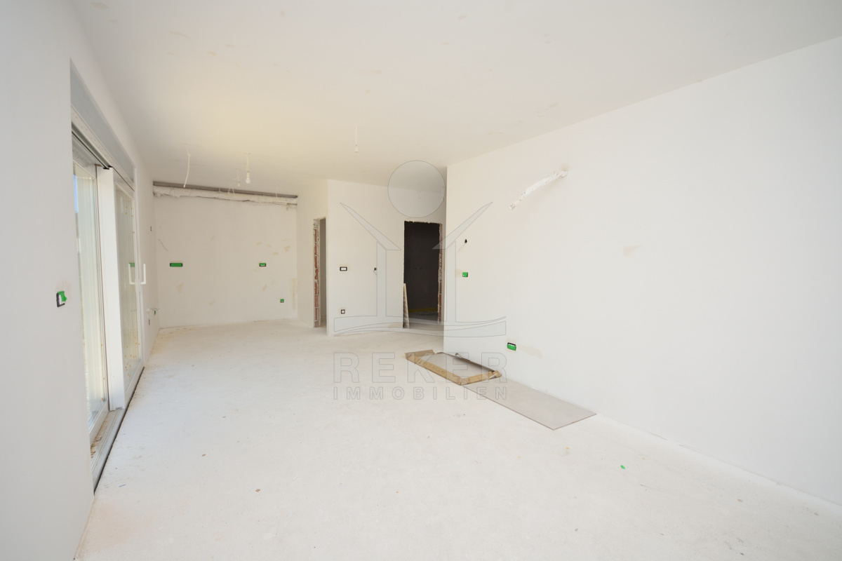 Auch der Außenbereich überzeugt. Ein Garten mit 19,74 m² und eine Terrasse mit 25,33 m², davon 9,75 m² überdacht. Geschützte Sitzplätze, offene Flächen, viel Freiraum. Der Meerblick macht das Ganze noch reizvoller. Ein eigener Stellplatz ist im Preis enthalten.