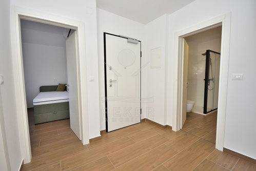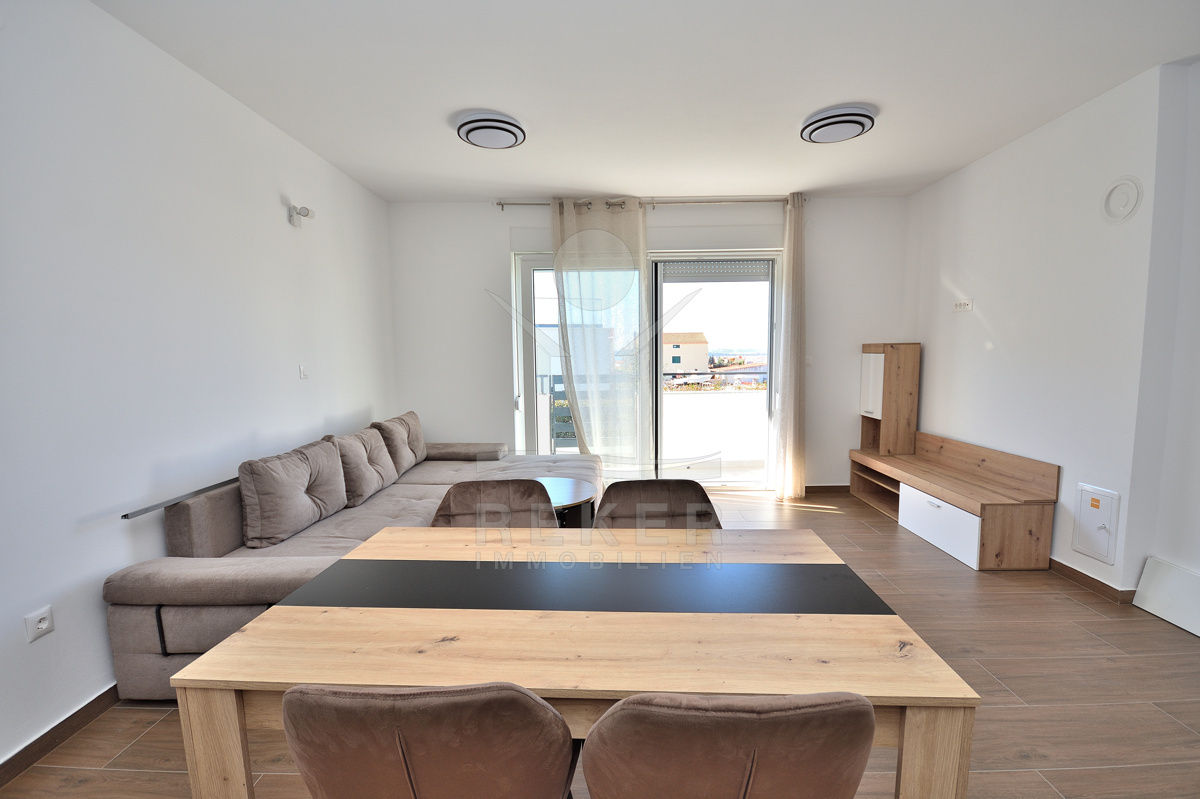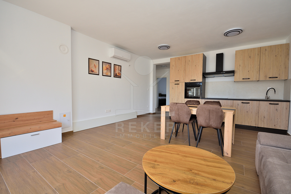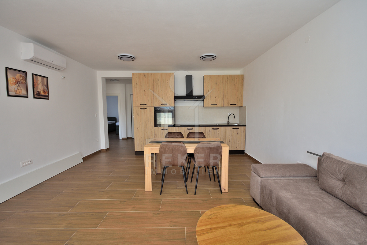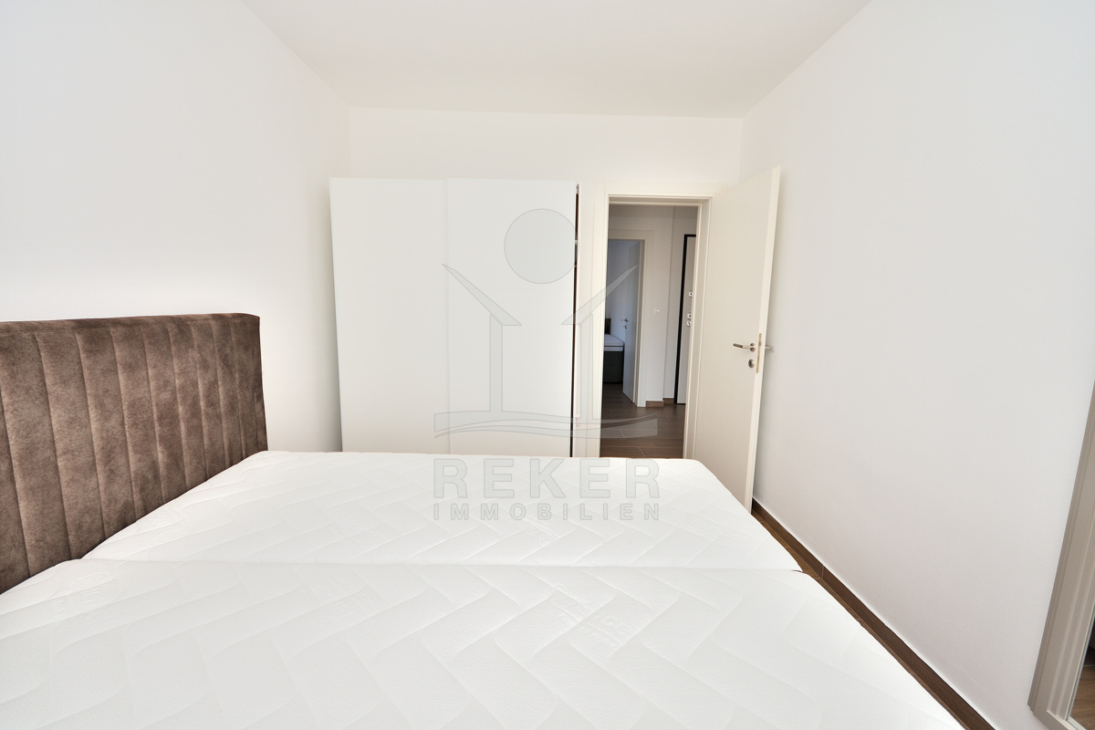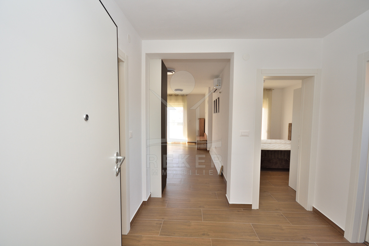 Diese Erdgeschosswohnung gehört zu einem neuen Gebäude mit nur vier Einheiten in Vodice. Die Umgebung wirkt angenehm ruhig. Einfamilienhäuser und moderne Villen prägen das Wohngebiet. Das Haus umfasst drei Etagen und befindet sich etwa 1 km vom Meer entfernt. Durch die leichte Hanglage genießen Sie einen schönen Blick auf das Meer. Praktisch im Alltag: Ein eigener Parkplatz direkt vor dem Gebäude gehört zur Wohnung.