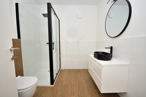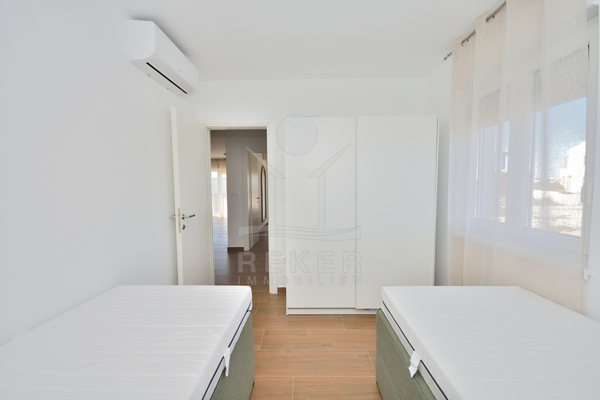 Auch die Ausstattung überzeugt. In allen Wohnräumen wurden Keramikfliesen in Parkettoptik verlegt. Die Badezimmer sind mit hellen Fliesen ausgestattet. Zusätzlich sorgt dort eine elektrische Fußbodenheizung für Komfort. Klimaanlagen im Wohnzimmer und in beiden Schlafzimmern regulieren die Temperaturen. Moskitonetze an allen Öffnungen erhöhen den Wohnkomfort. Im Wohnzimmer befindet sich ein TV-/SAT-Anschluss. Jede Wohnung im Gebäude besitzt außerdem einen eigenen Schornstein.