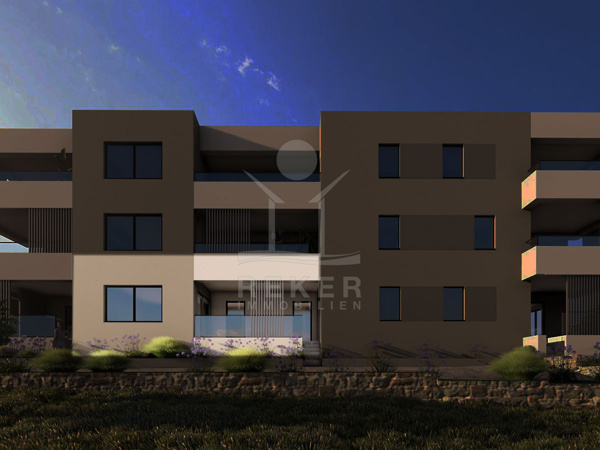 Die Erdgeschosswohnung ist Teil eines Neubauprojekts, das insgesamt 10 modern gestaltete Einheiten auf 2 Etagen beherbergt. Mit einer hochwertigen Bauweise und modernen Materialien erfüllt die Wohnung höchste Ansprüche. Die Styroporfassade sorgt für eine hervorragende Isolierung, während die PVC-Zimmerei in Anthrazit einen eleganten Look kreiert. Ausgestattet mit elektrischen Jalousien, stilvollen Steinbodenbelägen, modernen Badezimmerarmaturen und einer Fußbodenheizung in allen Räumen sorgt die Inverter-Klimaanlage für ein angenehmes Raumklima. Der geplante Baubeginn ist im Frühjahr 2025, und das Gebäude wird auch über einen praktischen Aufzug verfügen. Jede Wohnung erhält zusätzlich einen Abstellraum im Keller für zusätzlichen Stauraum und einen Parkplatz.