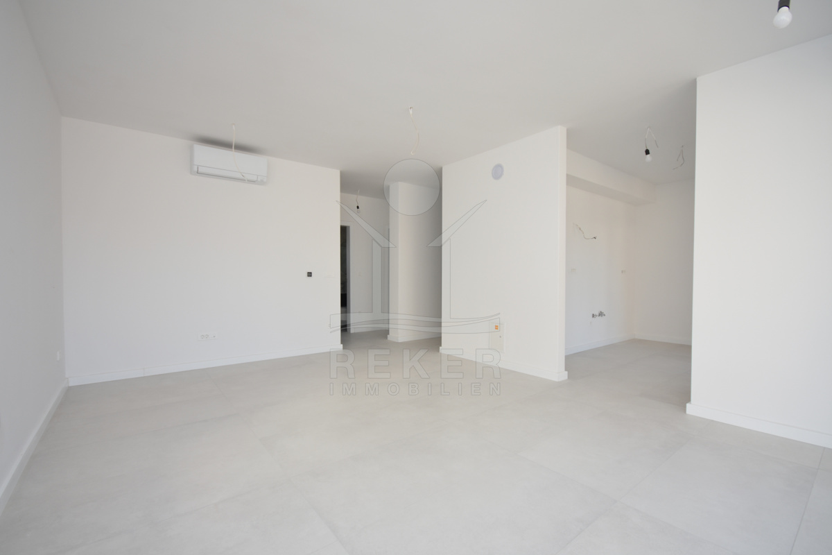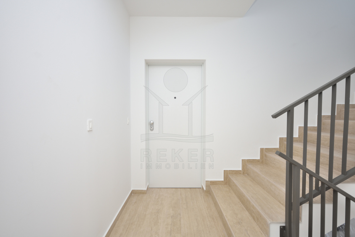 Im Inneren erwartet Sie moderne Funktionalität mit Wohlfühlfaktor. Zwei Schlafzimmer, ein stilvolles Bad, separates WC, offener Wohnbereich mit Küche und direkter Zugang zur Terrasse. Alles auf einer Ebene. Die Fußbodenheizung sorgt für warme Böden im Bad und Wohnzimmer – besonders im Winter angenehm. Klimaanlagen in allen Räumen machen auch heiße Sommertage erträglich. Die Wohnung ist hochwertig gebaut und technisch bestens ausgestattet. Ein privater Stellplatz gehört dazu. Einziehen können Sie ab März 2025 – rechtzeitig, um den nächsten Sommer hier zu genießen.