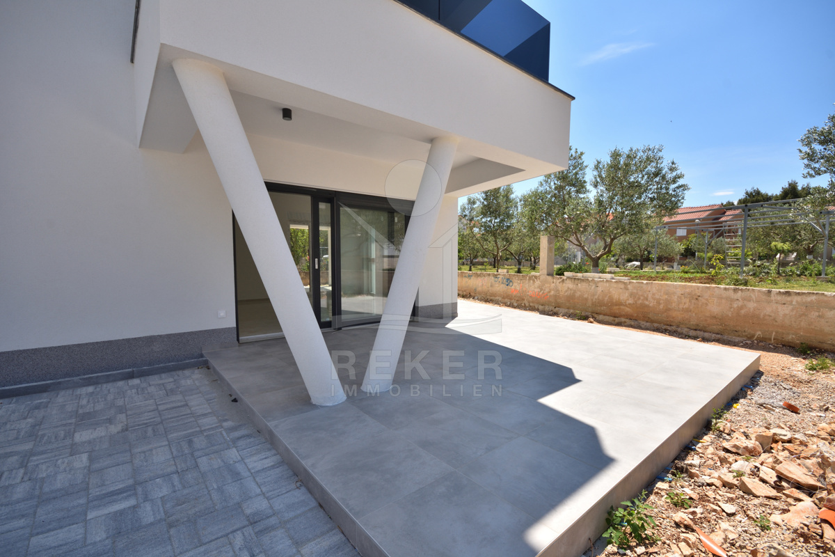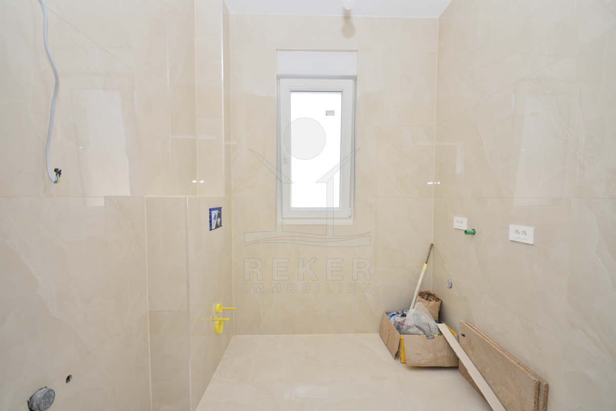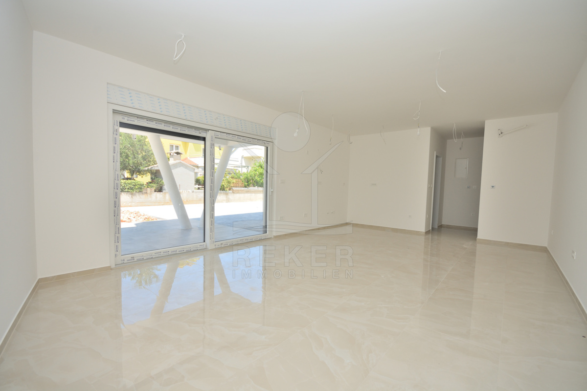 Vodice liegt direkt an der Küste, in einer beliebten, aber nicht überlaufenen Region. Die Wohngegend dieses Neubauprojekts ist ruhig und entspannt, kein Durchgangsverkehr, wenig Lärm. Der Strand ist nur rund 600 Meter entfernt, also bequem zu Fuß erreichbar. Auch das Ortszentrum mit Geschäften und Infrastruktur liegt in Gehweite, etwa 800 Meter. Die Nachbarschaft besteht überwiegend aus gepflegten Wohnhäusern mit Gärten und mediterranem Flair.