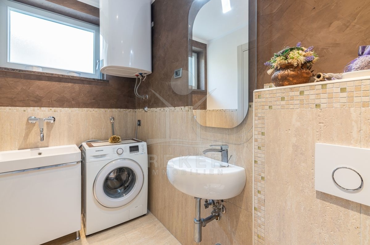 Die moderne Wohnung befindet sich in einer attraktiven Hanglage in Vrbnik auf der Insel Krk. Von hier aus haben Sie eine wunderschöne Aussicht auf die umliegenden Hügel und das Meer. Mit nur 700 Metern Entfernung zum Meer und zum Stadtzentrum können Sie sowohl den Strand als auch die charmante Altstadt von Vrbnik bequem zu Fuß erreichen. Die Lage am Hang bietet Ihnen nicht nur eine wundervolle Umgebung, sondern auch eine angenehme Brise und etwas Abstand vom Trubel der Stadt. Genießen Sie den herrlichen Ort und lassen Sie sich von der Schönheit der Insel Krk verzaubern.