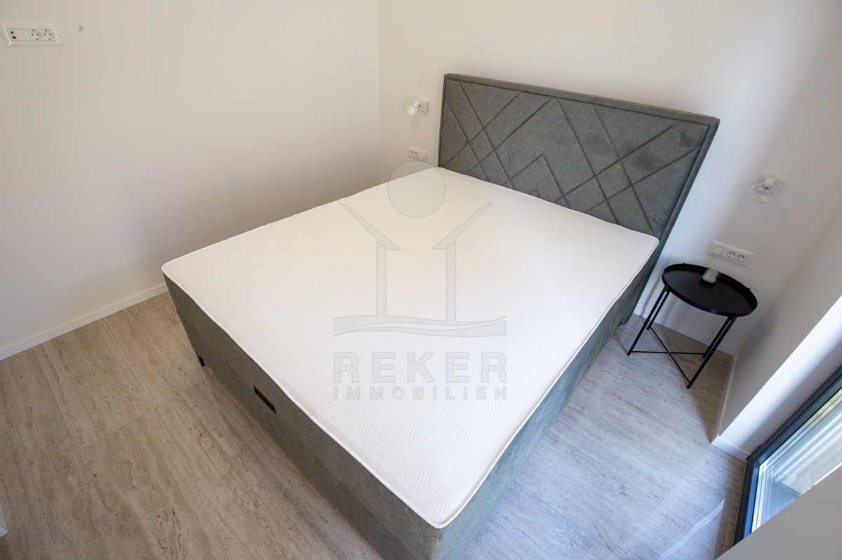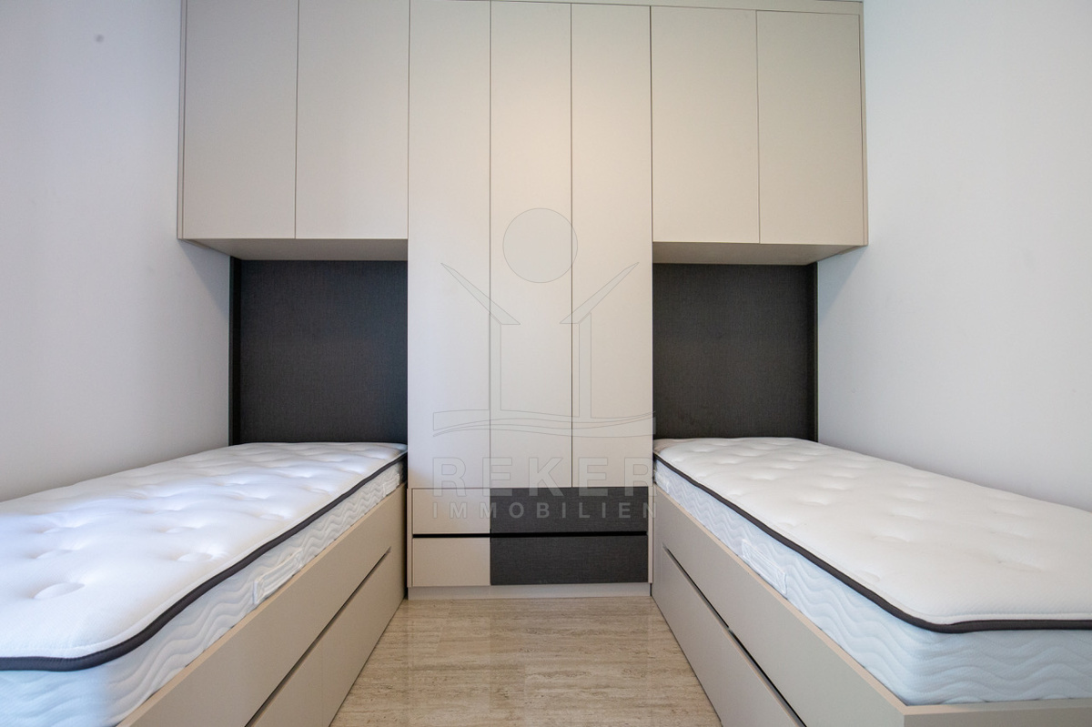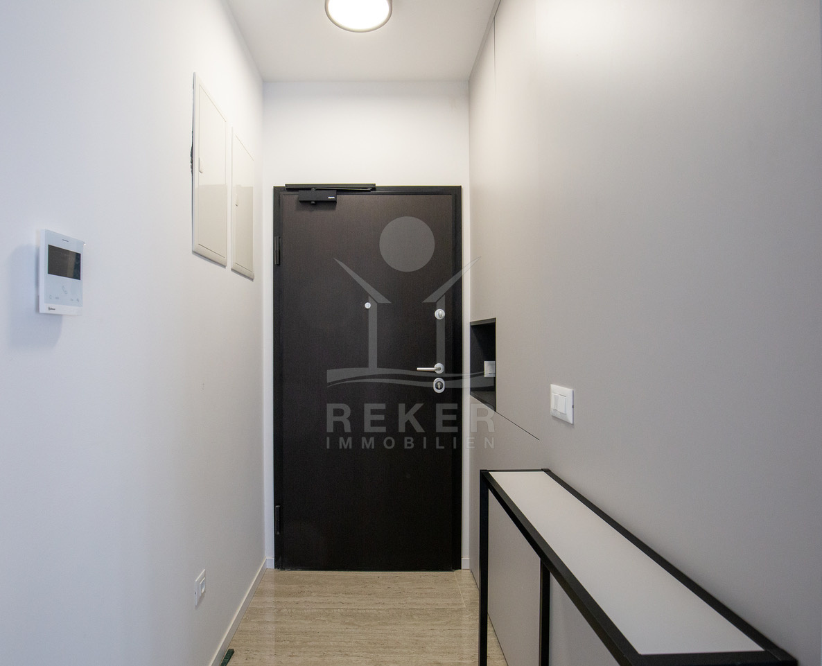 Die Wohnung bietet 81 m² Wohnfläche. Eine moderne Küche mit Essbereich, ein helles Wohnzimmer, zwei Schlafzimmer und ein Badezimmer mit Duschkabine bilden das Raumangebot. Hochwertige Materialien, Fußbodenheizung, elektrische Rollläden, einbruchssichere Türen und eine Video-Türsprechanlage sorgen für Komfort und Sicherheit. Die komplette Möblierung macht den Einzug sofort möglich.