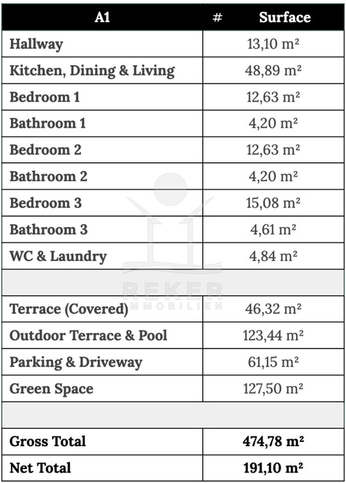 Diese Wohnung im Erdgeschoss ist komplett ausgestattet und bietet alles, was man an der Adria sucht. Innen wartet ein offener Wohnraum mit fast 50 m², drei Schlafzimmer, drei Bäder plus separates WC. Alle Räume mit Fußbodenheizung, Sonos-Sound, Samsung TVs und durchdachter Beleuchtung. Jalousien, Klima, Heizung: alles smart steuerbar. Die Möblierung? Hochwertig, stilvoll, komplett. Und draußen? Ein echter Luxus: 127 m² Garten, eine überdachte Terrasse und ein eigener Pool. Grillen, entspannen, schwimmen – alles in absoluter Privatsphäre. Die drei Stellplätze liegen direkt vor der Tür.