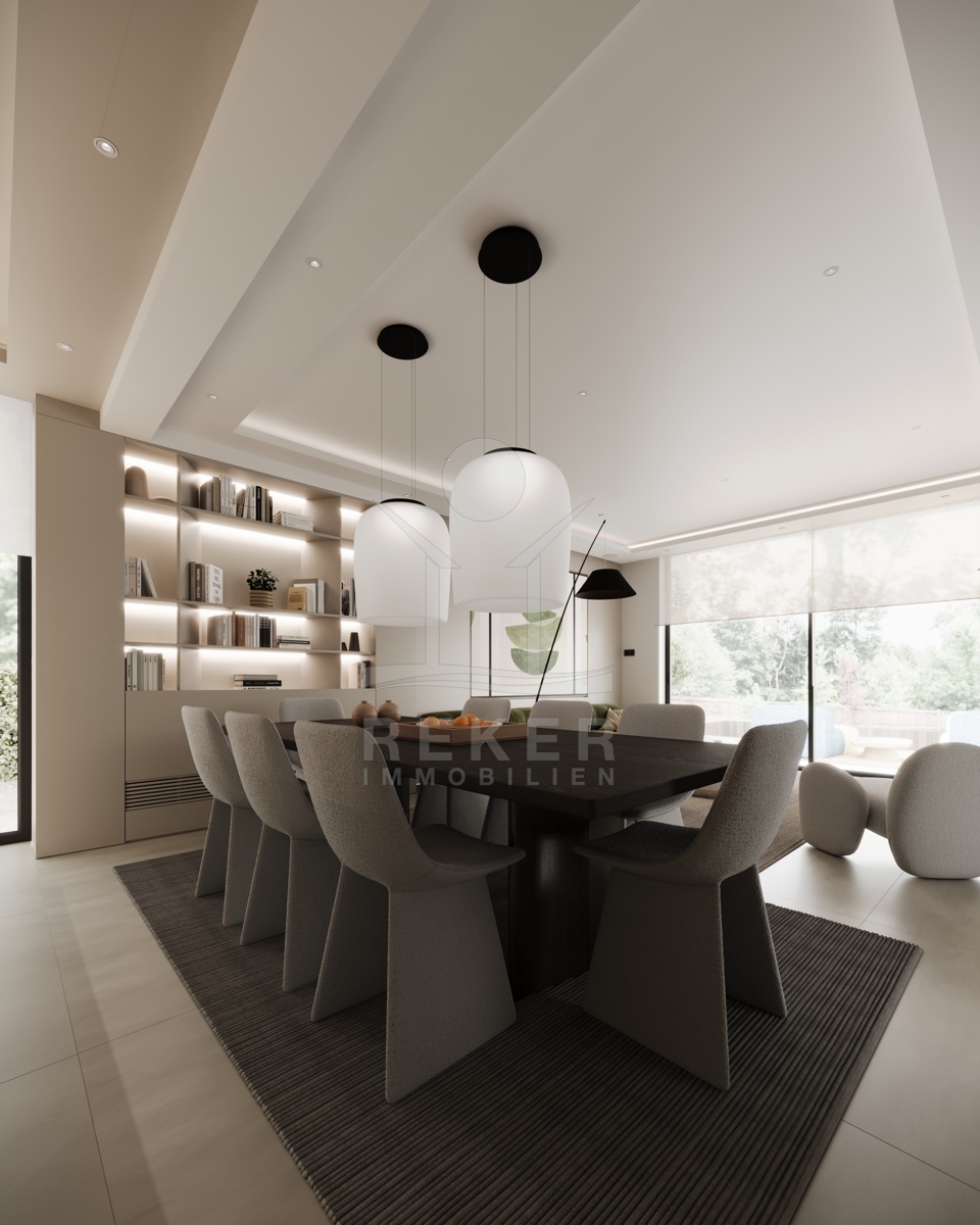 Großer Garten, 30 m² Pool, volle Privatsphäre und drinnen: Komfort auf höchstem Niveau. Diese Wohnung im Erdgeschoss verbindet smarte Technik mit wohnlicher Atmosphäre. Drei Schlafzimmer, drei vollwertige Bäder, dazu Gäste-WC, Hauswirtschaftsraum und ein luftiger Wohnbereich mit Zugang zur Terrasse. Alles komplett eingerichtet – bis zu den Fernsehern und Soundsystemen.