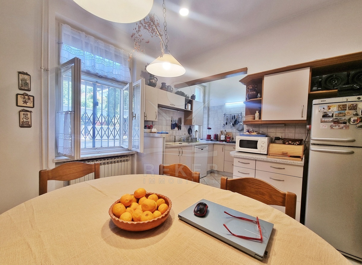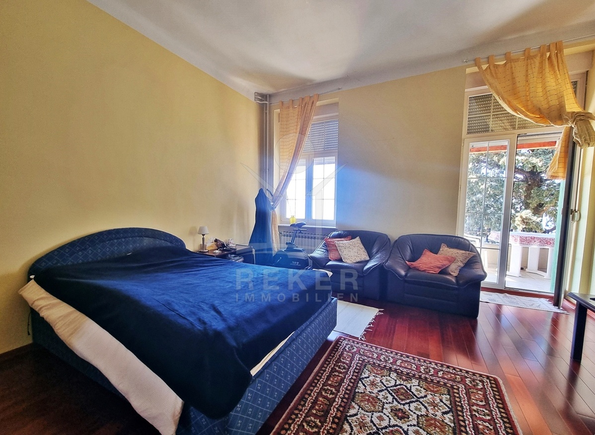 In Rijeka, direkt an der Uferlinie, liegt diese seltene Gelegenheit: Eine großzügige Wohnung in absoluter Meereslage. Nur 10 Meter vom Wasser entfernt – und mit einem privaten Zugang zum Strand, den nur die Eigentümer dieser charmanten Altbauvilla nutzen dürfen. Die Umgebung ist grün, gepflegt und angenehm belebt. Die Marina ist nur wenige Schritte entfernt. Parken? Kein Problem – zwei Stellplätze gehören zum Angebot.