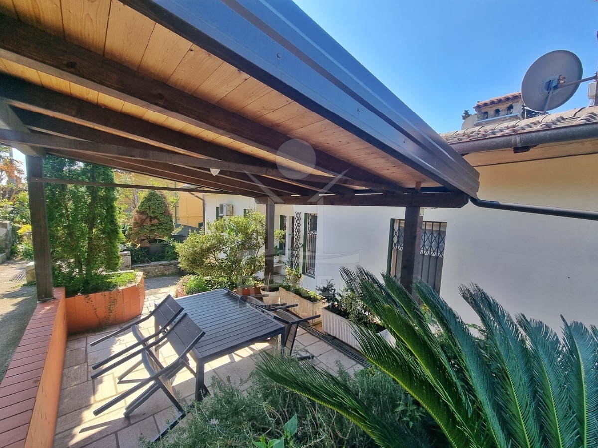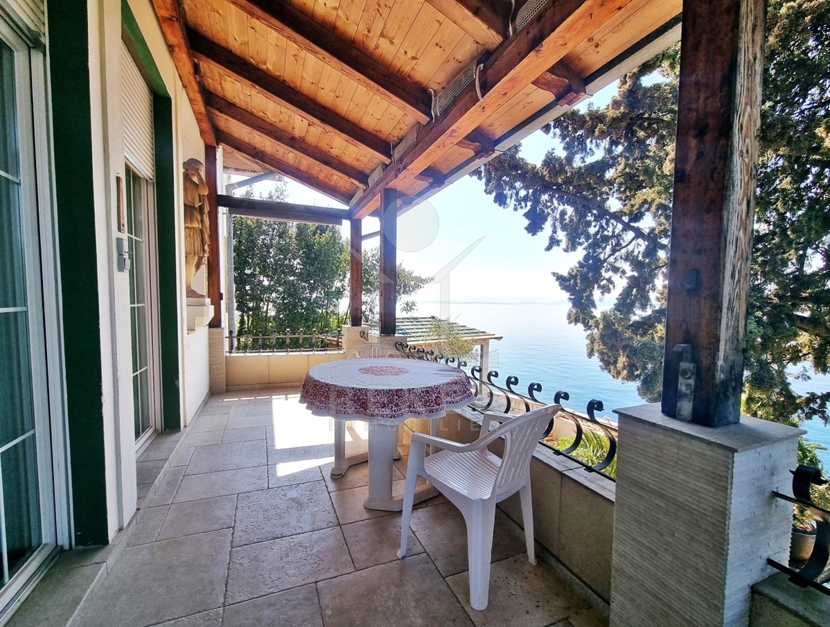 Die Wohnung befindet sich im ersten Stock einer Villa mit nur zwei Einheiten. Sie bietet viel Raum: Vier helle Zimmer mit Südausrichtung, zwei davon mit Zugang zum großen, überdachten Balkon – mit traumhaftem Blick auf das Meer. Dazu kommen eine geräumige Küche mit Essbereich, zwei Badezimmer und zwei weitere, flexibel nutzbare Räume. Ob Gästezimmer, Homeoffice oder Atelier – alles ist möglich. Und draußen im Garten lädt ein geschützter, überdachter Sitzplatz zum Verweilen ein. Zwischen Palmen, Oliven und mediterranen Pflanzen genießen Sie Ihre Pausen mit Blick ins Grüne.