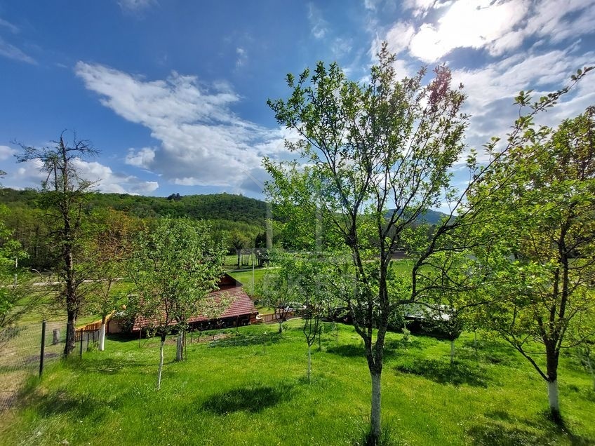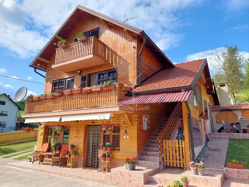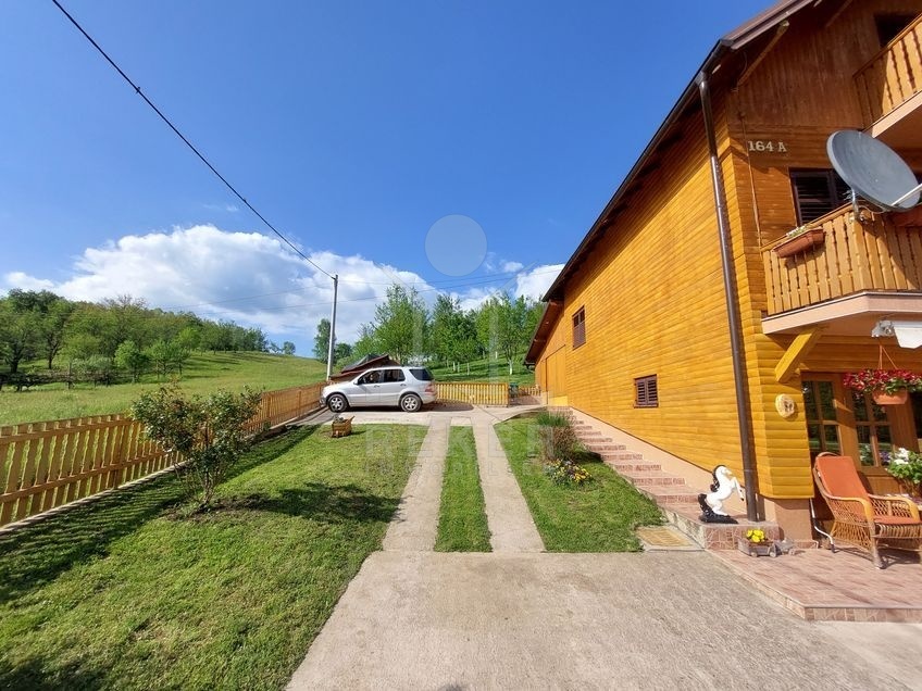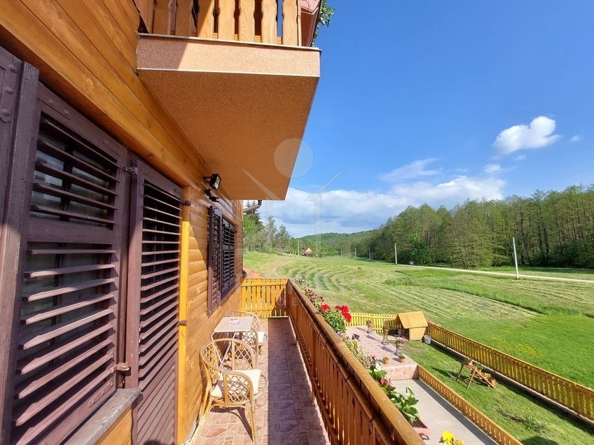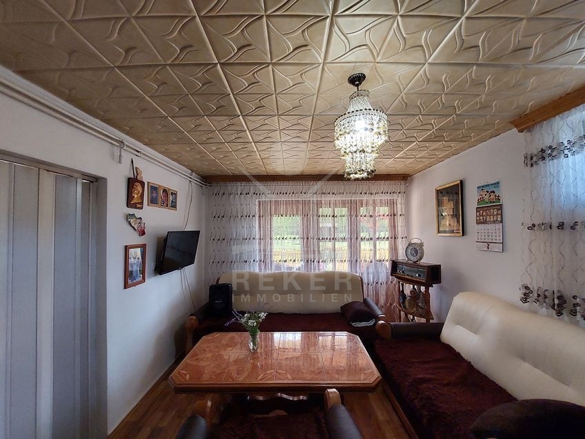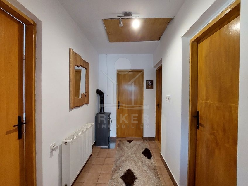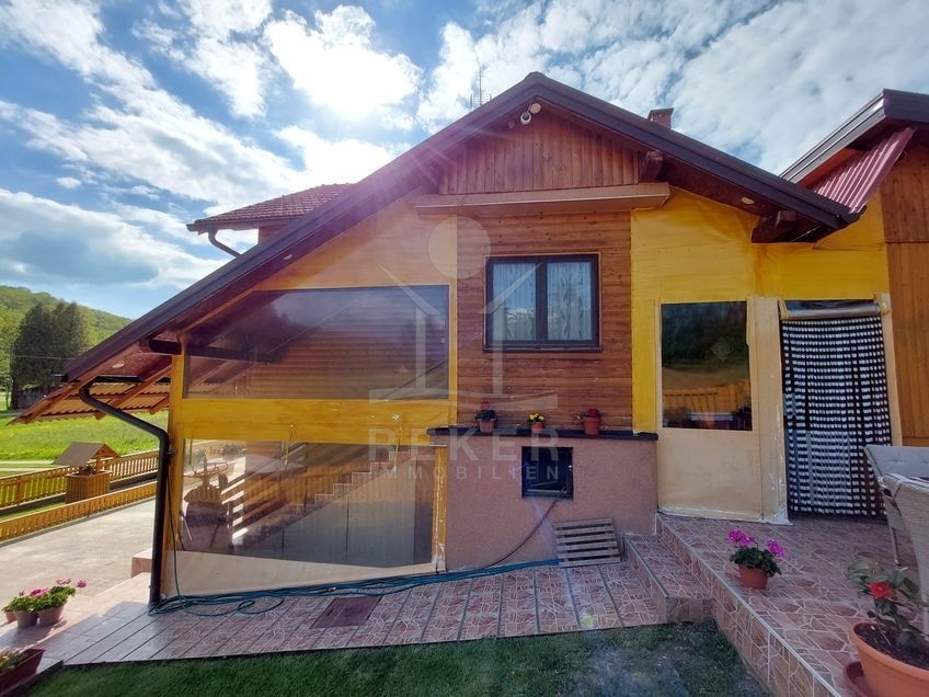 Das Gebäude selbst ist vollständig mit Holz verkleidet, was ihm eine charmante und rustikale Atmosphäre verleiht. Es erstreckt sich über 134 m², mit zusätzlichen 50 m² im Dachgeschoss. Das Wasser für das Haus stammt aus einer natürlichen Quelle mit Wasser in Thermalbadqualität. Ein Garagenstellplatz sowie zusätzlicher Platz im Hof stehen für Parkmöglichkeiten zur Verfügung.