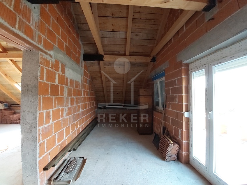 Das Dachgeschoss ist über einen separaten Eingang über eine Außentreppe erreichbar. Auf dieser Etage erwartet Sie eine großzügige Fläche mit rustikalen Balken und Schrägwänden, die ein wunderbares romantisches Ambiente schaffen. Ein weiterer Balkon bietet eine herrliche Aussicht auf die Ferne.