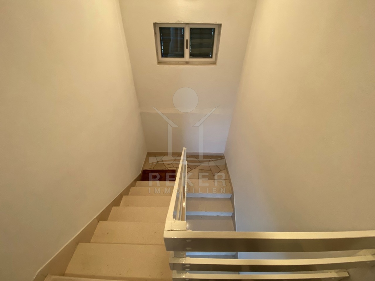 Eine Innentreppe führt in den ersten Stock, wo eine weitere Küche, ein großzügiges Wohnzimmer mit Essbereich und 2 weitere Schlafzimmer und ein Badezimmer warten. Vom Wohnzimmer aus genießen Sie den Zugang zu einem überdachten Balkon, der mit einem herrlichen Meerblick zum Entspannen einlädt.