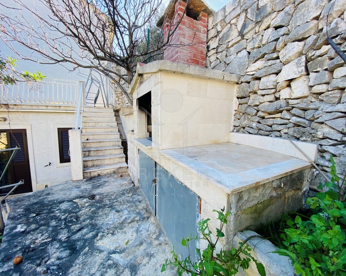 Das Einfamilienhaus befindet sich auf der wunderschönen Insel Brač, nur 150 Meter vom Meer entfernt, in unmittelbarer Nähe zum Strand und zu allen wichtigen Einrichtungen. Die Lage ist ideal, um die Vorzüge des Insellebens zu genießen, während Sie gleichzeitig die kulturellen und natürlichen Schönheiten der Region Dalmatien erkunden können. Die Umgebung bietet Ihnen die Möglichkeit, den berühmten Kiesstrand Zlatni Rat zu besuchen, der bei Windsurfern sehr beliebt ist und unweit des malerischen Badeortes Bol liegt. Der Küstenort Pučišća, bekannt für seine traditionellen Gebäude und den aktiven Steinbruch, in dem der charakteristische weiße Kalkstein abgebaut wird, ist ebenfalls nicht weit entfernt. Mit etwa 13.000 Einwohnern bietet die Insel eine freundliche Gemeinschaft und eine entspannte Lebensart. Die Anreise gestaltet sich einfach und bequem, entweder über den Flughafen Split mit anschließender Fährüberfahrt nach Supetar oder über Makarska. Von hier sind Sie perfekt verbunden, um die atemberaubenden Landschaften und das kristallklare Wasser der Adria zu entdecken. Genießen Sie das Leben im Herzen Dalmatien und erleben Sie unvergessliche Sonnenuntergänge in Ihrem neuen Zuhause.