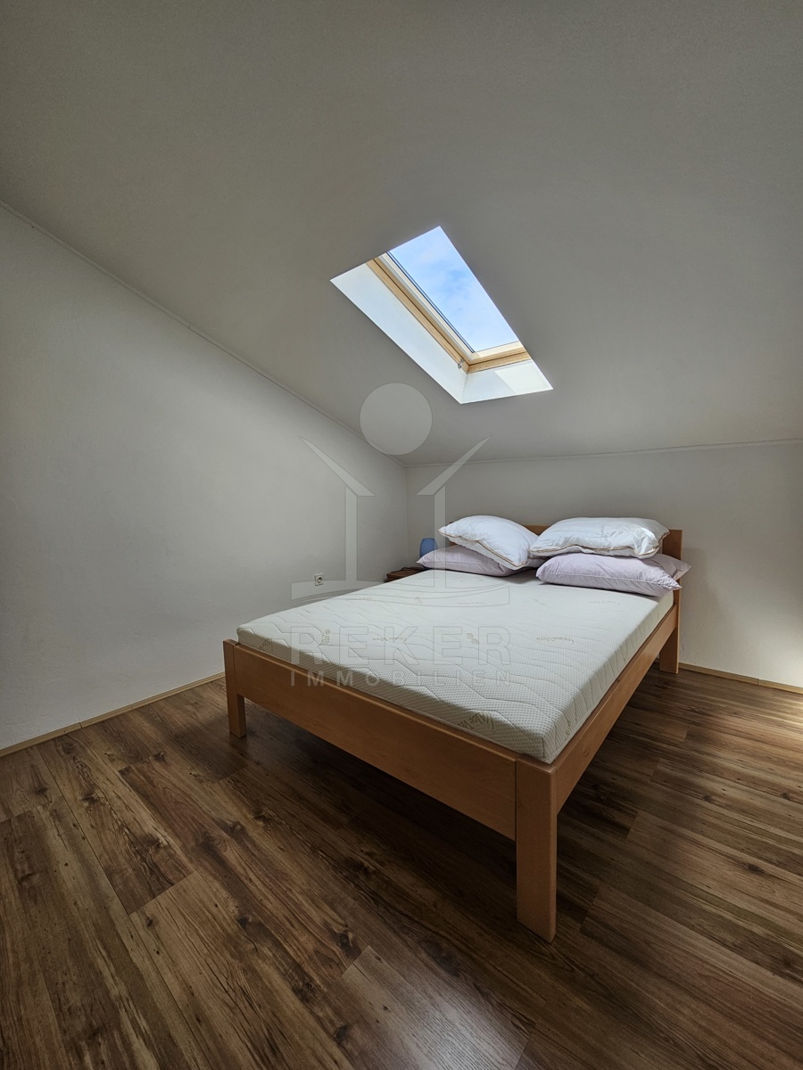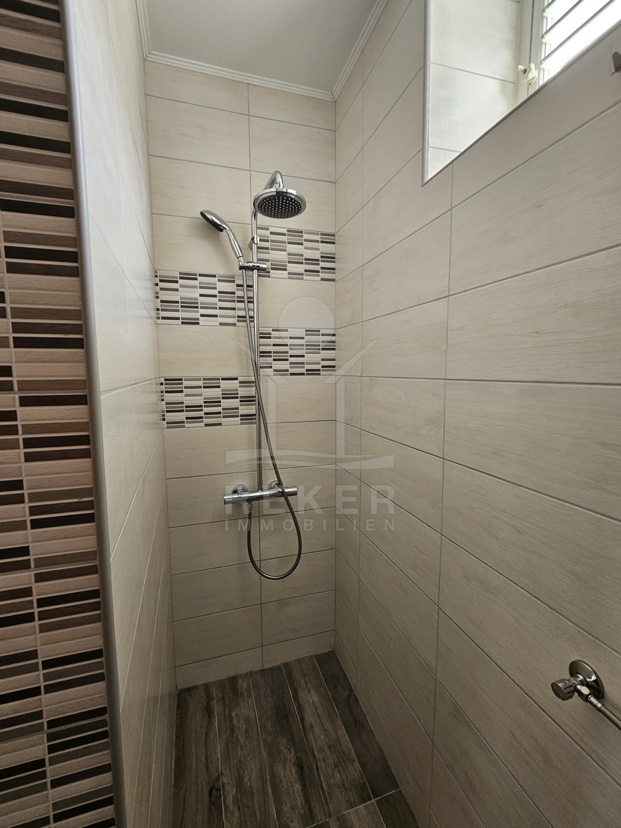 Das Dachgeschoss (62 m²) bietet eine komplett renovierte 3-Zimmer-Wohnung, die modern gestaltet und bezugsfertig ist. Hier genießen Sie alle Annehmlichkeiten für ein komfortables Leben. Dank der hohen Decken und großen Fenster eröffnet sich ein atemberaubender Blick auf die umliegende Natur und das Meer, was den Wohnraum zu einem echten Rückzugsort macht.