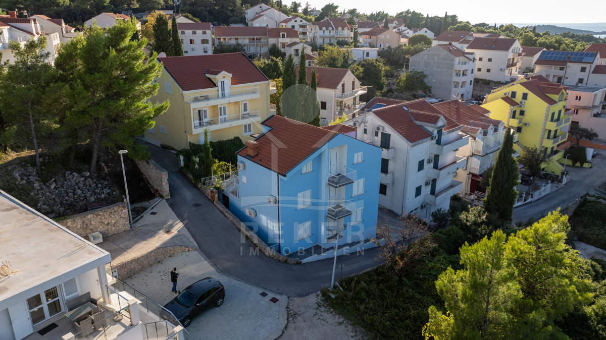 Das Mehrfamilienhaus begeistert mit einer Grundstücksgröße von 172 m² und erstreckt sich über 3 Etagen mit einer Gesamtwohnfläche von 217 m². Die letzte Anpassung fand im Jahr 2022 statt, sodass das Gebäude modernen Standards entspricht. Es bestehen hervorragende Möglichkeiten, eine Sommerküche oder einen kleinen Garten einzurichten, was dieses Objekt besonders attraktiv macht. Zudem bietet der Hof Platz für 2 bis 3 Autos, was während der touristischen Hochsaison einen erheblichen Vorteil darstellt.