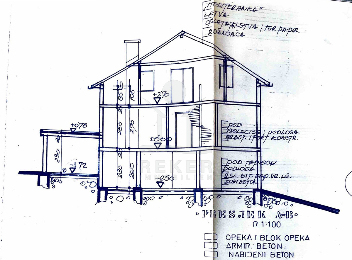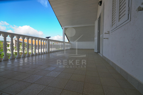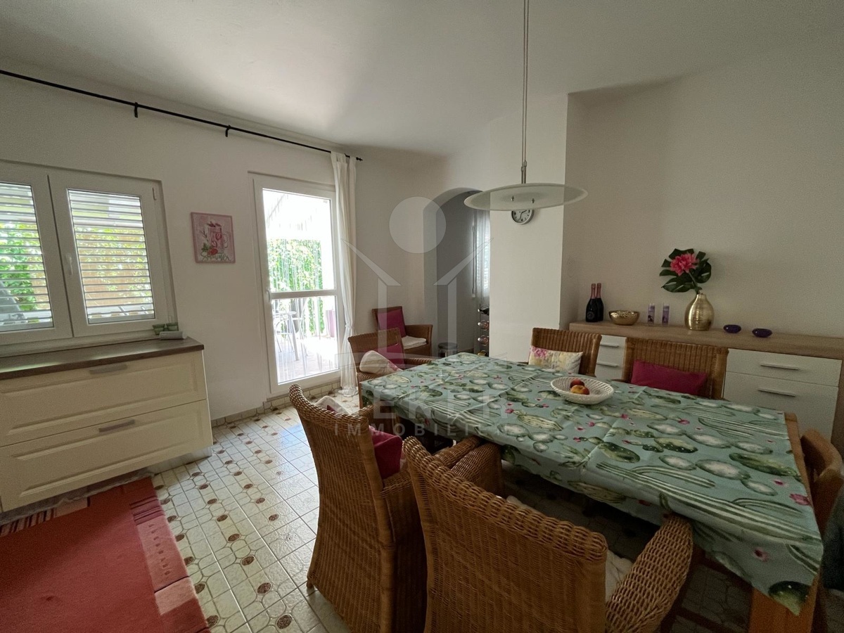 Das Anwesen liegt auf einem 348 m² großen Grundstück mit einem mediterran gestalteten Garten, der mit zahlreichen Bäumen bepflanzt ist. Die leichte Hanglage bietet einen malerischen Ausblick und eine idyllische Umgebung. Mit 3 Etagen und einer Gesamtfläche von 206 m² wurde das Gebäude im Jahr 2022 renoviert und angepasst. Das Haus verfügt über Alu/PVC-Fenster und -Eingangstüren mit integrierten Fliegengittern. Eine Zisterne unter der Terrasse im Erdgeschoss ist ein historisches Merkmal, wie seinerzeit üblich war. Mit einer großen Garage und ausreichend Parkplätzen bietet die Immobilie auch praktische Annehmlichkeiten für die Bewohner.