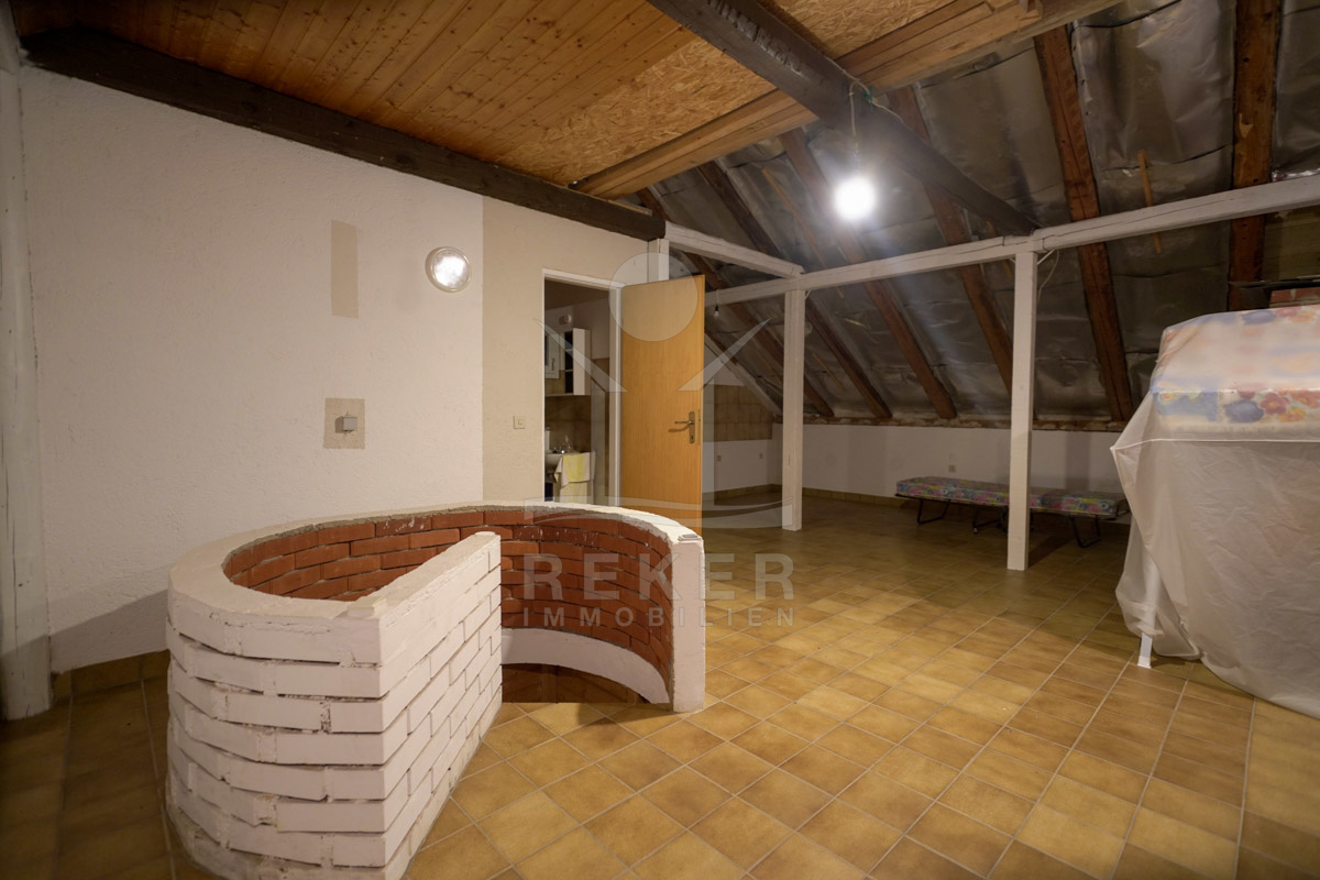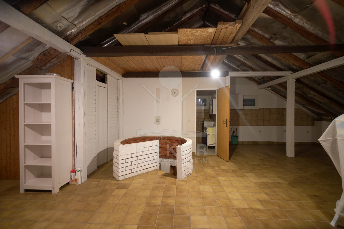 Der erste Stock verfügt über zwei Balkone, die perfekte Plätze für frische Luft und Ausblicke sind. Der Zugang zum Dachboden bietet die Möglichkeit, einen zusätzlichen Raum ganz nach Ihren Wünschen zu gestalten. Im Dachgeschoss sind sämtliche Anschlüsse für Bad, WC und Küche vorhanden. Genießen Sie die Badewanne, das WC und das Handwaschbecken.