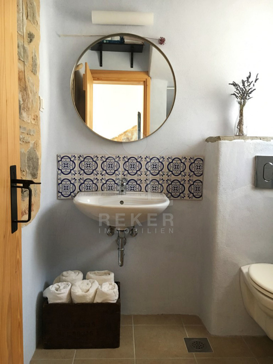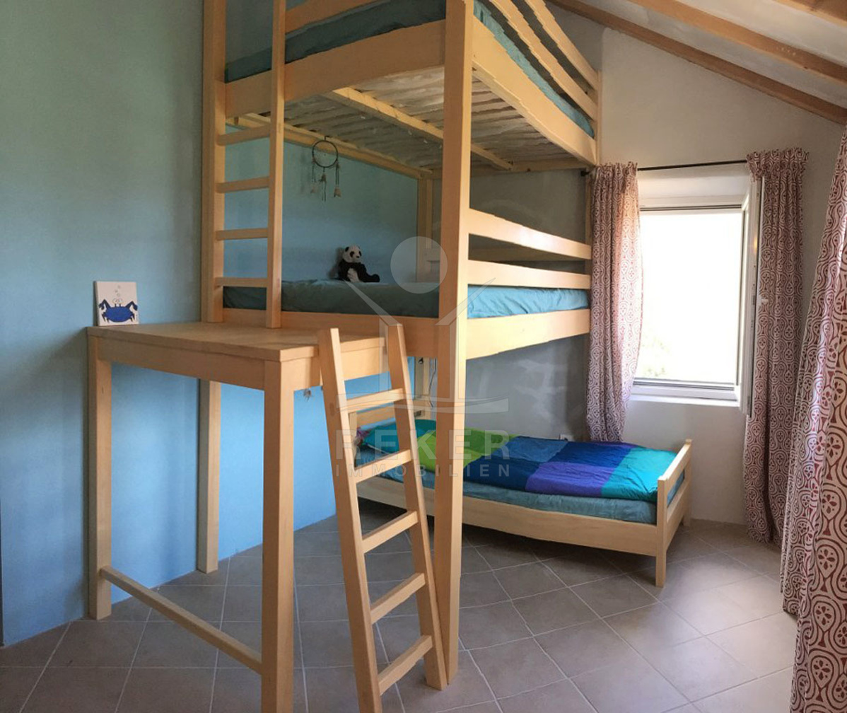 Im 1. Stock erwarten Sie drei gemütliche Schlafzimmer, die Ruhe und Entspannung bieten. Ein modernes Badezimmer mit Dusche und WC sorgt für zusätzliche Bequemlichkeit. Der Balkon auf beiden Etagen lädt zu entspannten Stunden mit einem herrlichen Blick auf die Nachbarinsel und das charmante Dorf ein.