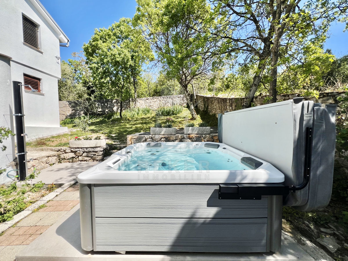 Die Immobilie befindet sich in einer ruhigen Umgebung in Jadranovo, nur 1,5 km vom Meer entfernt. In der Nähe finden Sie Parks, öffentliche Verkehrsmittel, Spielplätze, Fitnessmöglichkeiten und Einkaufsmöglichkeiten im Ortskernzentrum, das nur 1,7 km entfernt liegt. Jadranovo, auf dem Festland gegenüber der Insel Krk in der Kvarner Bucht gelegen, ist bekannt für seine zahlreichen Strände mit abgelegenen romantischen Badebuchten, das kristallklare Wasser der Adria und die einzigartige Natur. Der Ort ist nur etwa 9 km vom touristischen Hauptort Crikvenica entfernt, der über die Jahre mit den Nachbarorten zusammengewachsen ist. Restaurants, Konobas und Cafés verwöhnen Sie mit traditionellen Spezialitäten der Region. Die gute Anbindung an den öffentlichen Nahverkehr und die Nähe zum Flughafen auf der Insel Krk (15 km entfernt) machen den Ort zu einem beliebten Urlaubsziel für Besucher aus aller Welt. Hier können Sie absolute Ruhe und Entspannung in einer traumhaften Umgebung genießen.