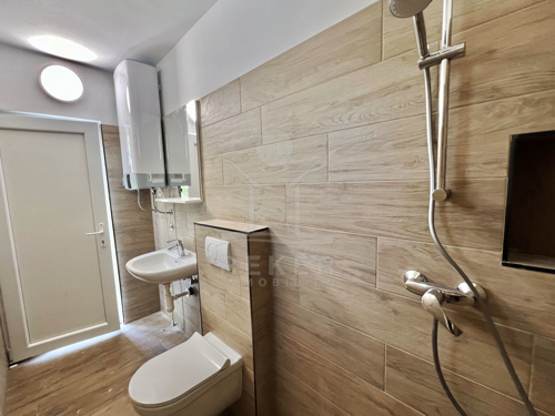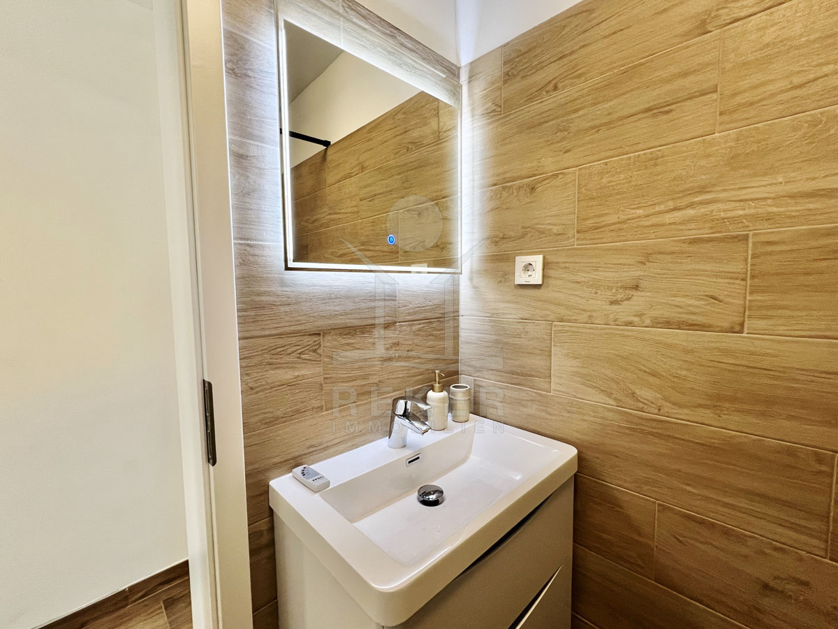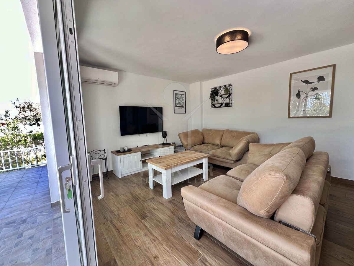 Das Haus ist mit einer Klimaanlage ausgestattet und wird vollständig möbliert verkauft. Im Erdgeschoss befindet sich ein Apartment mit einem Wohnzimmer, Esszimmer, Küche, Bad, Schlafzimmer und eine geräumige Südterrasse umgeben von viel Grün und einem schönem Garten.