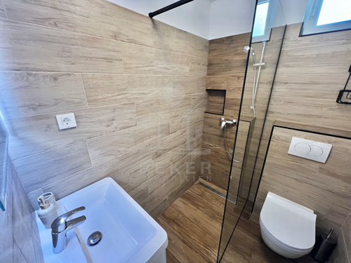 Die Außentreppe führt in die erste Etage, die als separate Wohneinheit konzipiert ist. Hier finden Sie ein Wohnzimmer, eine Küche, ein Esszimmer, ein Badezimmer, zwei Schlafzimmer und einen großzügigen Balkon mit Meerblick und Blick auf die Natur. Genießen Sie den Luxus dieses einzigartigen Apartments.