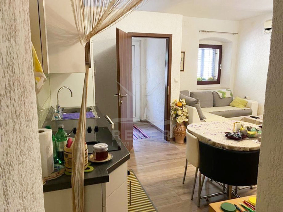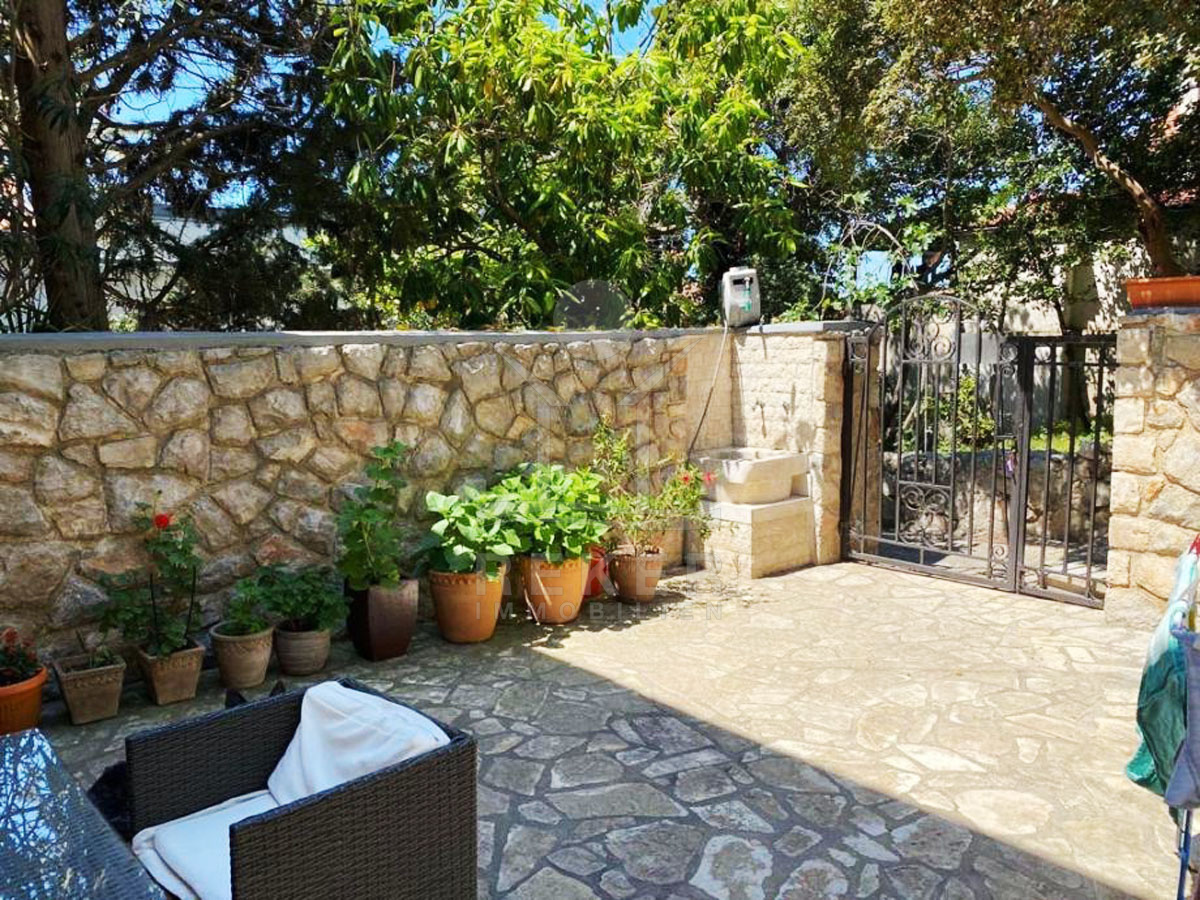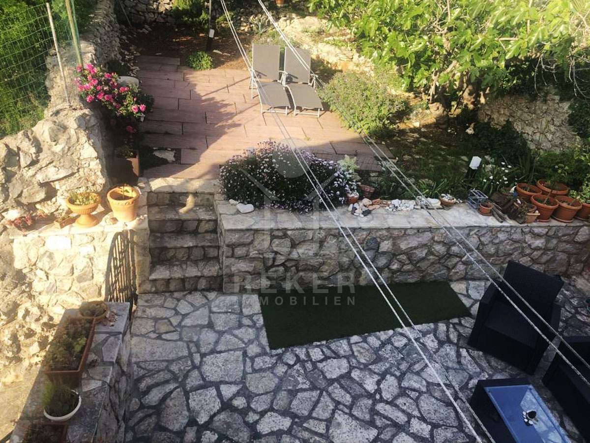 Das Mehrfamilienhaus mit 2 Einheiten und einer Wohnfläche von 160 m² befindet sich auf einem Gartenfläche von 168 m², die vom Grün umgeben ist und über typisch mediterranen Charme verfügt. Das Grundstück ist mit Stein gepflastert und liebevoll gepflegt, was dem Anwesen eine schöne Atmosphäre verleiht. Die Küstenbepflanzung unterstreicht den mediterranen Charme und dass die Ruhe und Entspannung verspricht.
