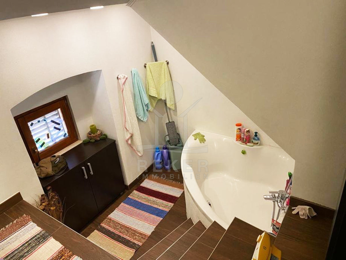 Das Haus bietet das Beste an Komfort mit insgesamt 4 Klimaanlagen. Die Immobilie wird vollständig möbliert verkauft. Im Erdgeschoss befindet sich eine geräumige Wohnung mit Schlafzimmer, Küche, Wohnzimmer, Bad, Abstellraum und einer Terrasse mit Grillmöglichkeit. Zusätzlich gibt es einen Fitnessraum und einen Abstellraum mit separatem Eingang.