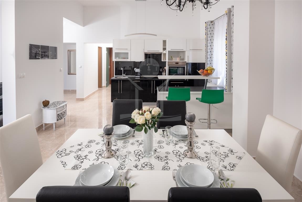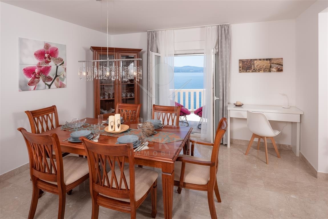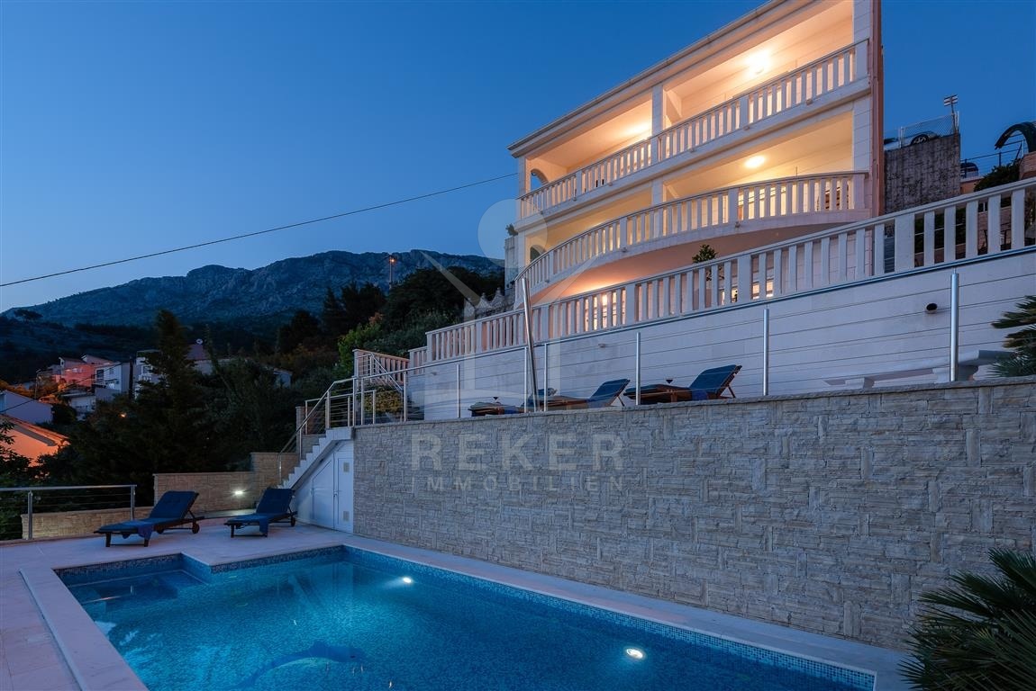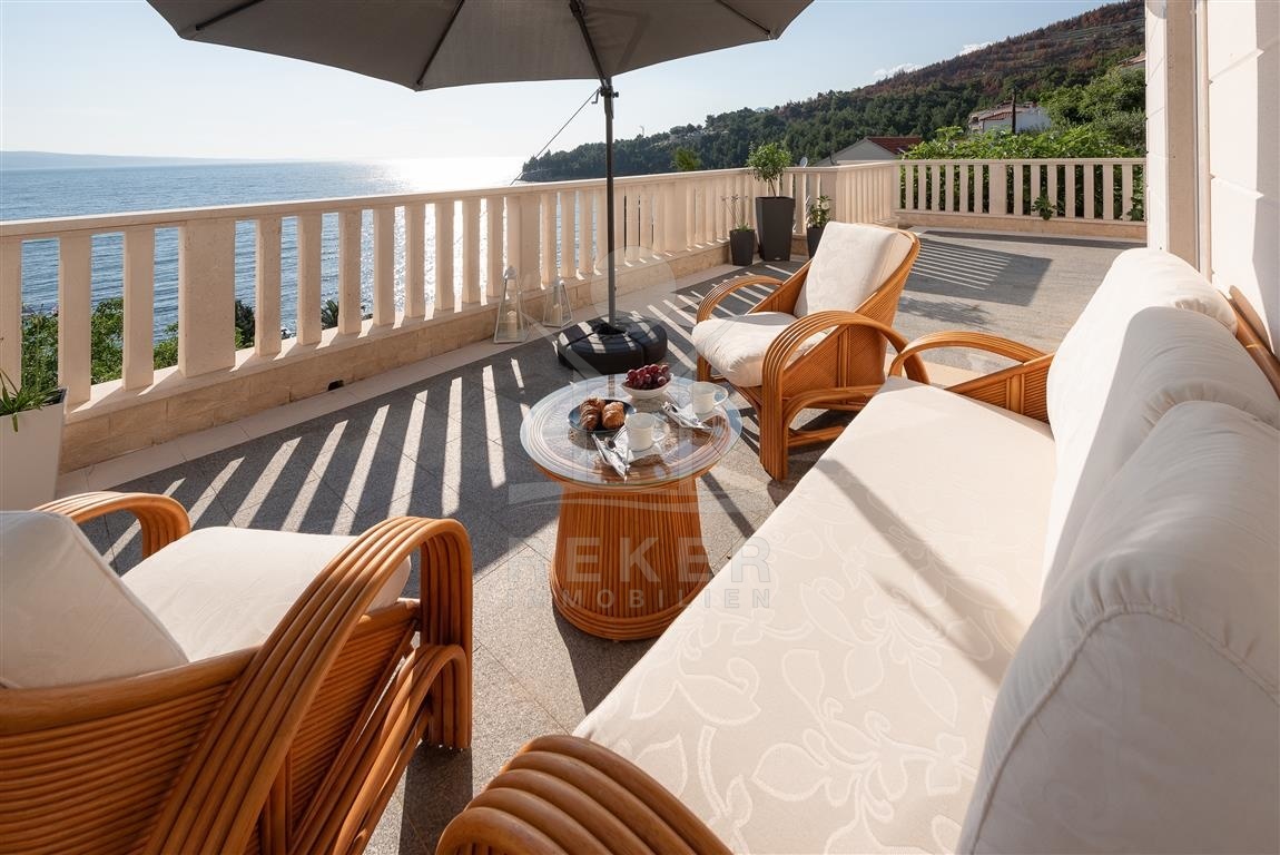 Freuen Sie sich auf etwa 200 m² stilvoll und luxuriös eingerichtete Wohnfläche. Die Wände und Böden sind mit echtem Stein verkleidet, was dem Haus einen zusätzlichen Wert verleiht. Wundervolle Rückzugsorte bilden die Terrasse und die Balkone, die allesamt einen märchenhaften Meerblick bieten. Ein herrlicher Pool komplettiert dieses überwältigende Luxus-Paket.