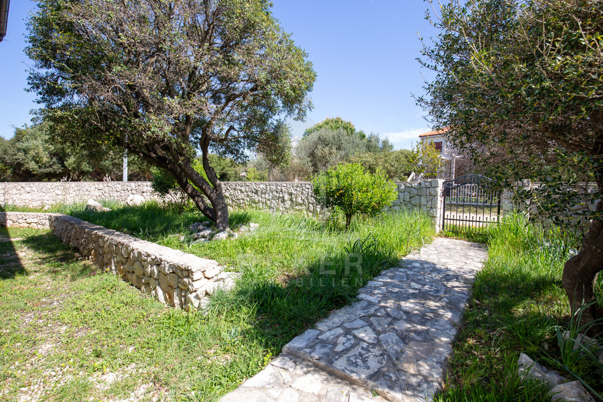 Novalja auf der Insel Pag. Nur 130 Meter bis zum Strand. So nah, dass man das Meeresrauschen fast hört. Das Haus liegt ruhig, ein Stück außerhalb – etwa 8 Kilometer vom Zentrum. Rundherum: mediterrane Pflanzen, klare Luft, keine Hektik. Die Zufahrt ist unkompliziert, geparkt wird bequem auf dem Grundstück. Die massive Steinmauer sorgt für Privatsphäre. Und das merkt man.