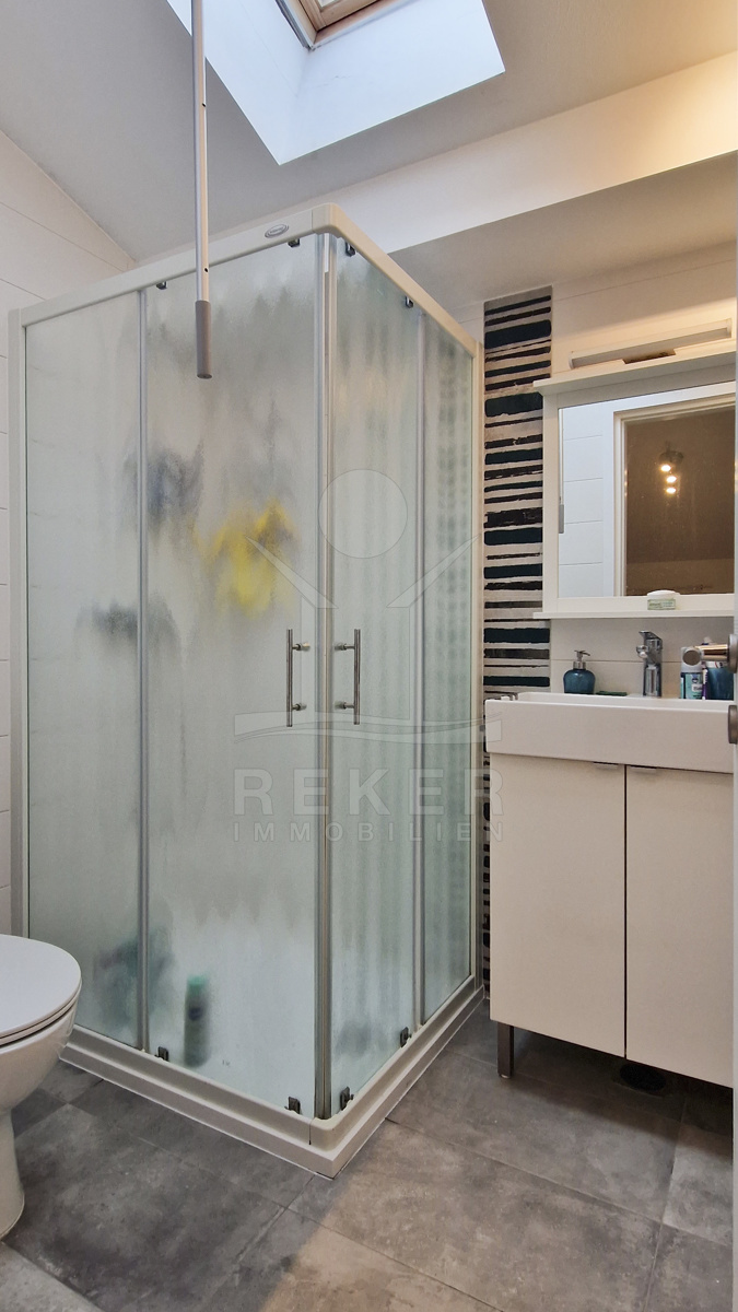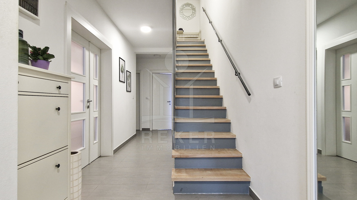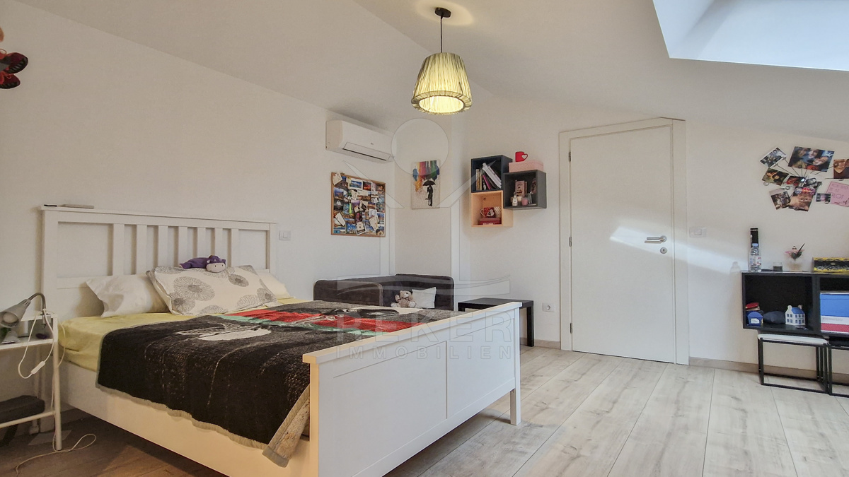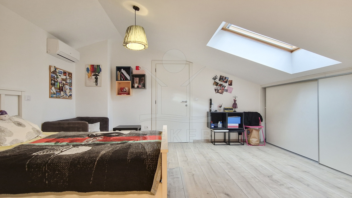 Die erste Etage beeindruckt mit einem geräumigen Wohnzimmer, einem Essbereich und einer großen Küche, die direkten Zugang auf den Balkon bietet. Hier werden kulinarische Genüsse zum Vergnügen. Im 1. Stock finden Sie auch ein großes Schlafzimmer mit einem begehbaren Kleiderschrank und ein Badezimmer für maximale Privatsphäre und Entspannung.