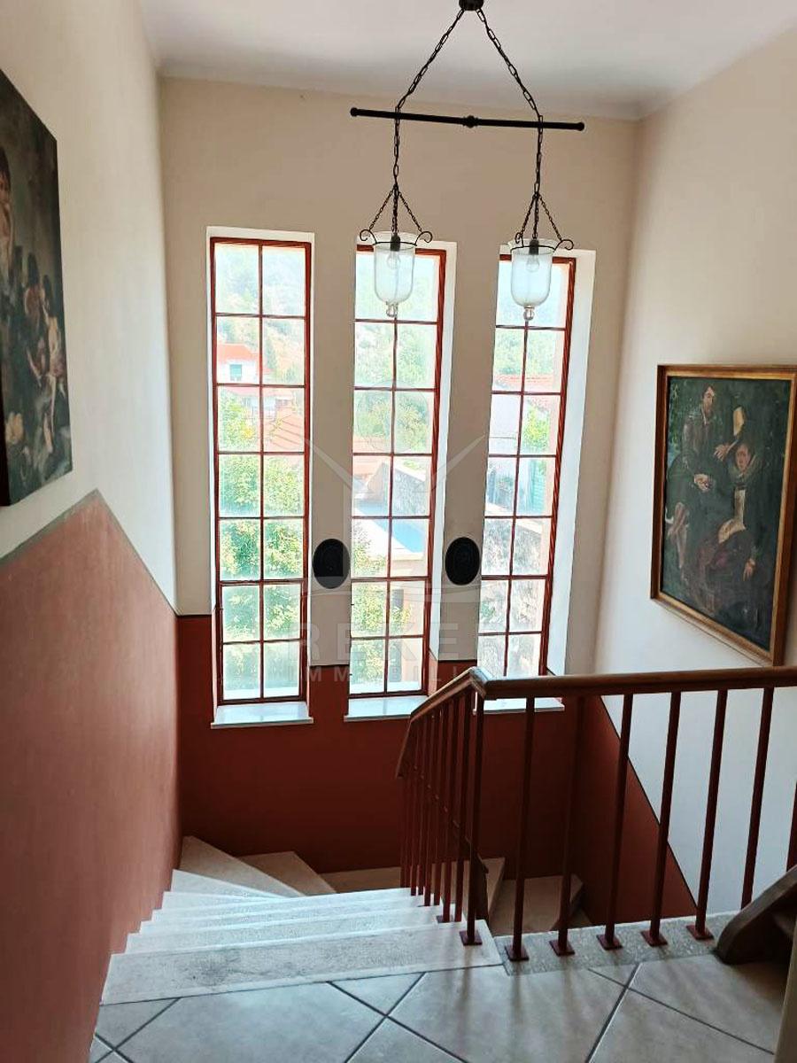 Das Anwesen bietet ein Grundstück mit einer unschlagbaren Größe von 4.652 m². Es ist komplett eingefriedet und bietet absolute Privatsphäre. Der großzügige und wunderschön angelegte Garten ist mit zahlreichen Obstbäumen, Oliven und Zierbäumen geschmückt und lädt zum Entspannen und Genießen der Natur ein. Das Gebäude erstreckt sich über 3 Etagen mit einer Gesamtwohnfläche von 365 m², einschließlich des unterkellerten Bereichs. Es wurde im Jahr 2005 komplett saniert und bietet eine verlockende Kombination aus moderner und antiker Einrichtung. Die 16,5 m² große Durchgangsgarage führt in den Innenhof, in dem sich auch eine separate Doppelgarage befindet, die ausreichend Parkmöglichkeiten für die Bewohner bietet.