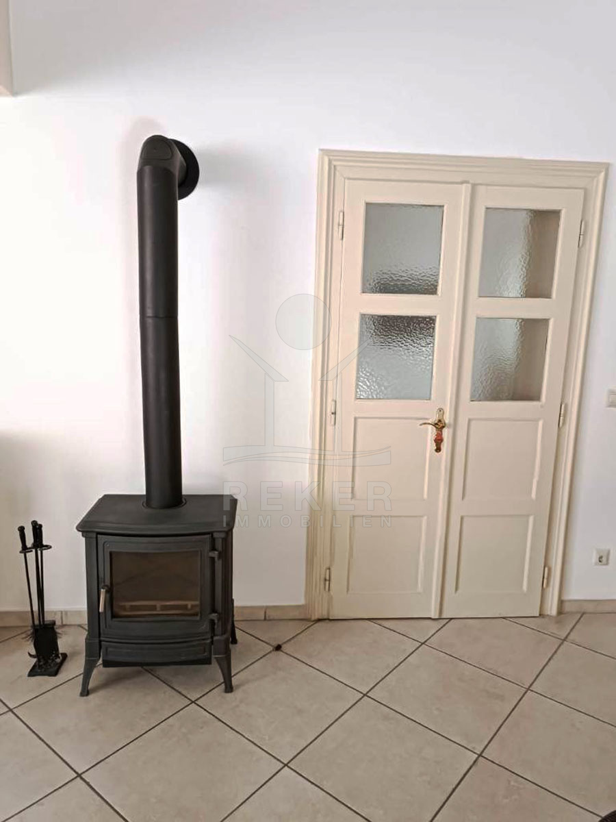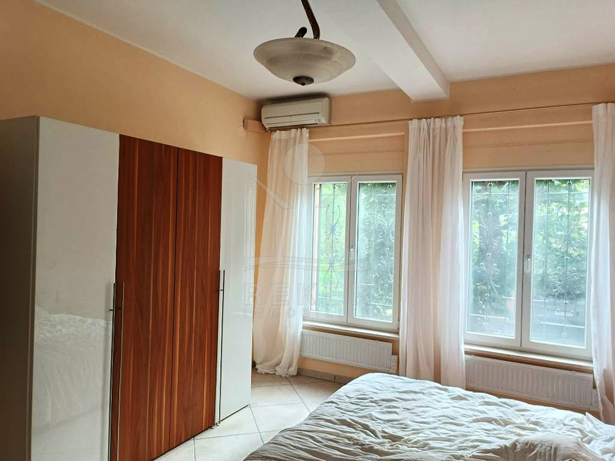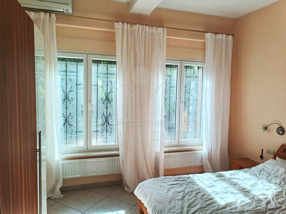 Das komplett möbliertes Haus verfügt über eine Klimaanlage für angenehme Temperaturen. Im Hochparterre befindet sich eine geräumige 88 m² große Wohnung mit einem Kamin für gemütlichen Stunden, einem Schlafzimmer und separatem Außeneingang.