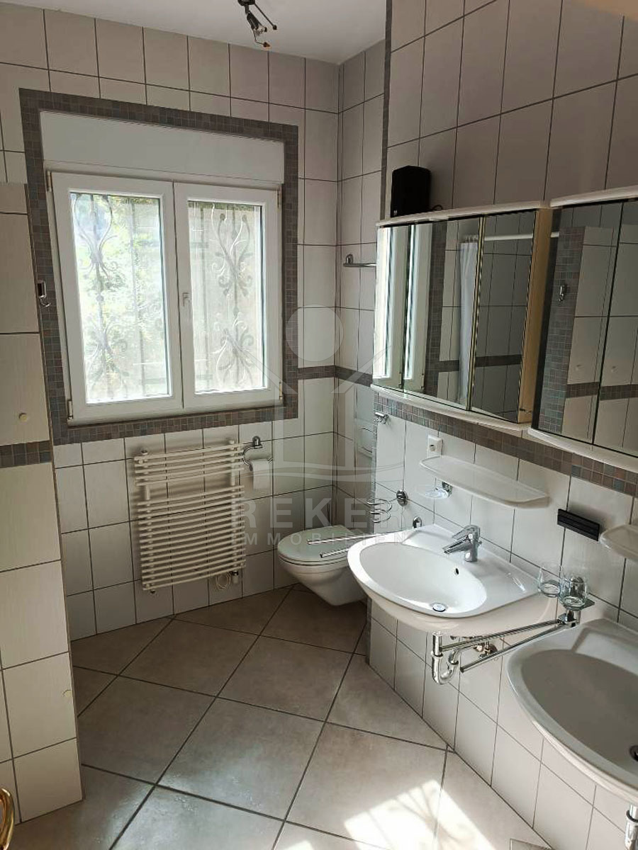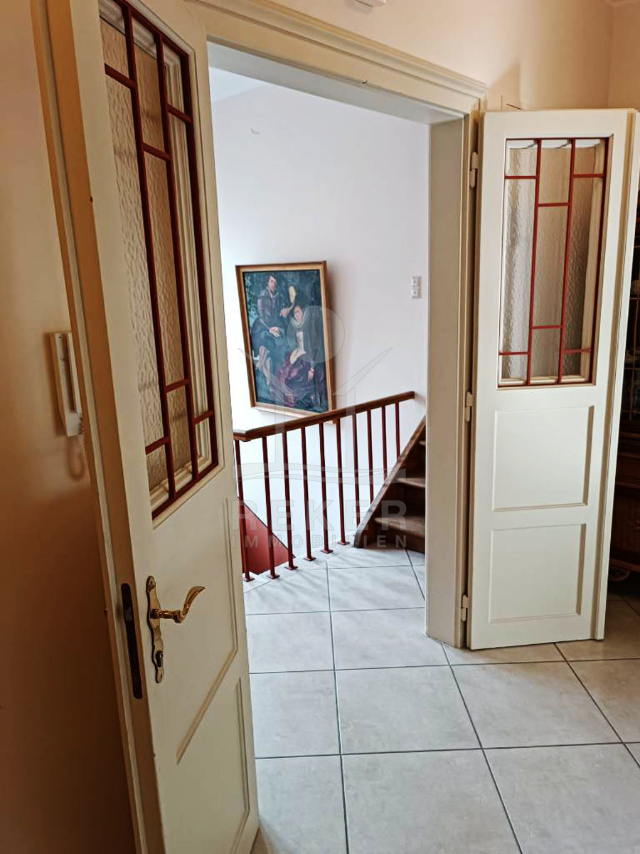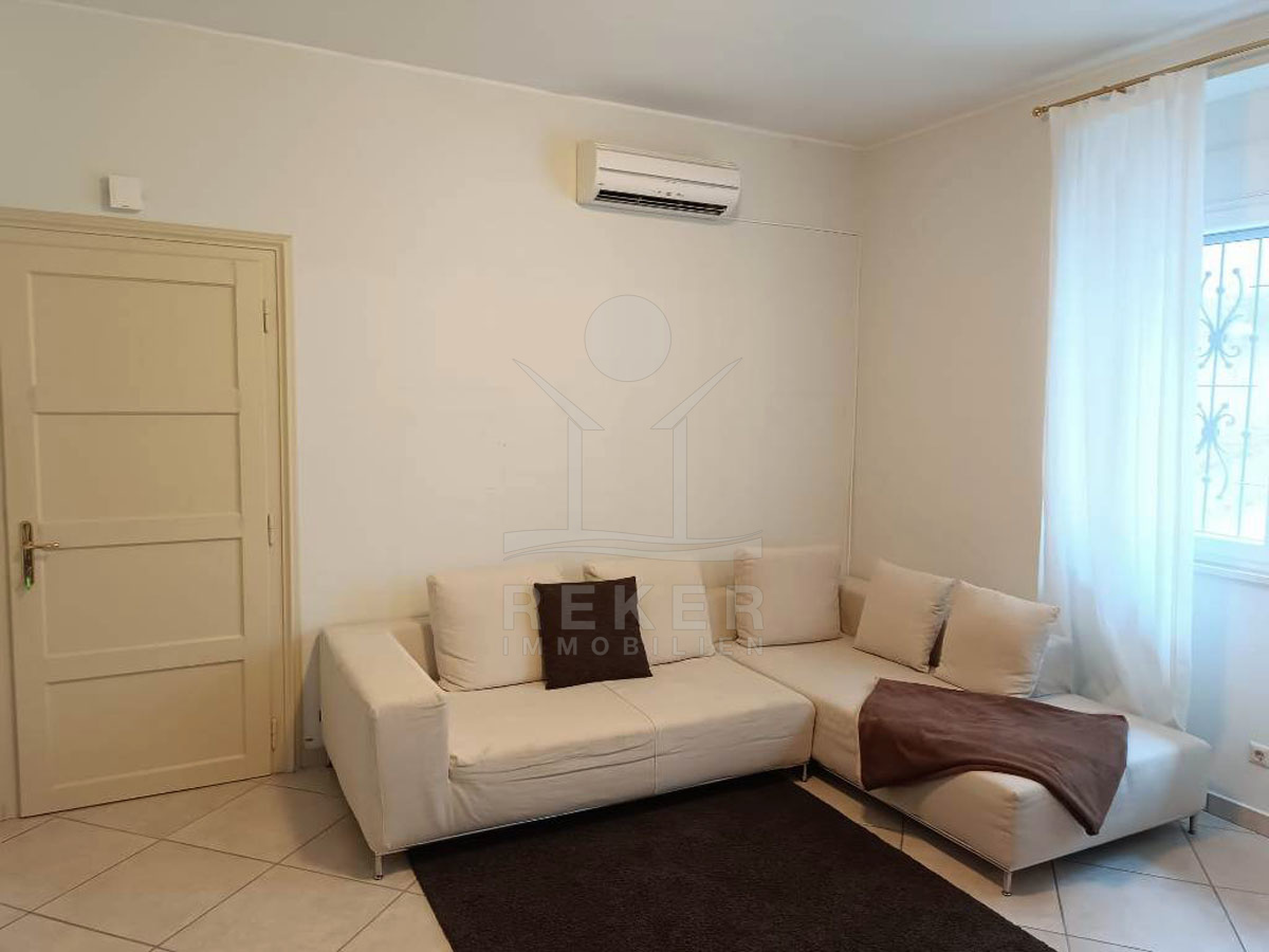 Das komplett möbliertes Haus verfügt über eine Klimaanlage für angenehme Temperaturen. Im Hochparterre befindet sich eine geräumige 88 m² große Wohnung mit einem Kamin für gemütlichen Stunden, einem Schlafzimmer und separatem Außeneingang.