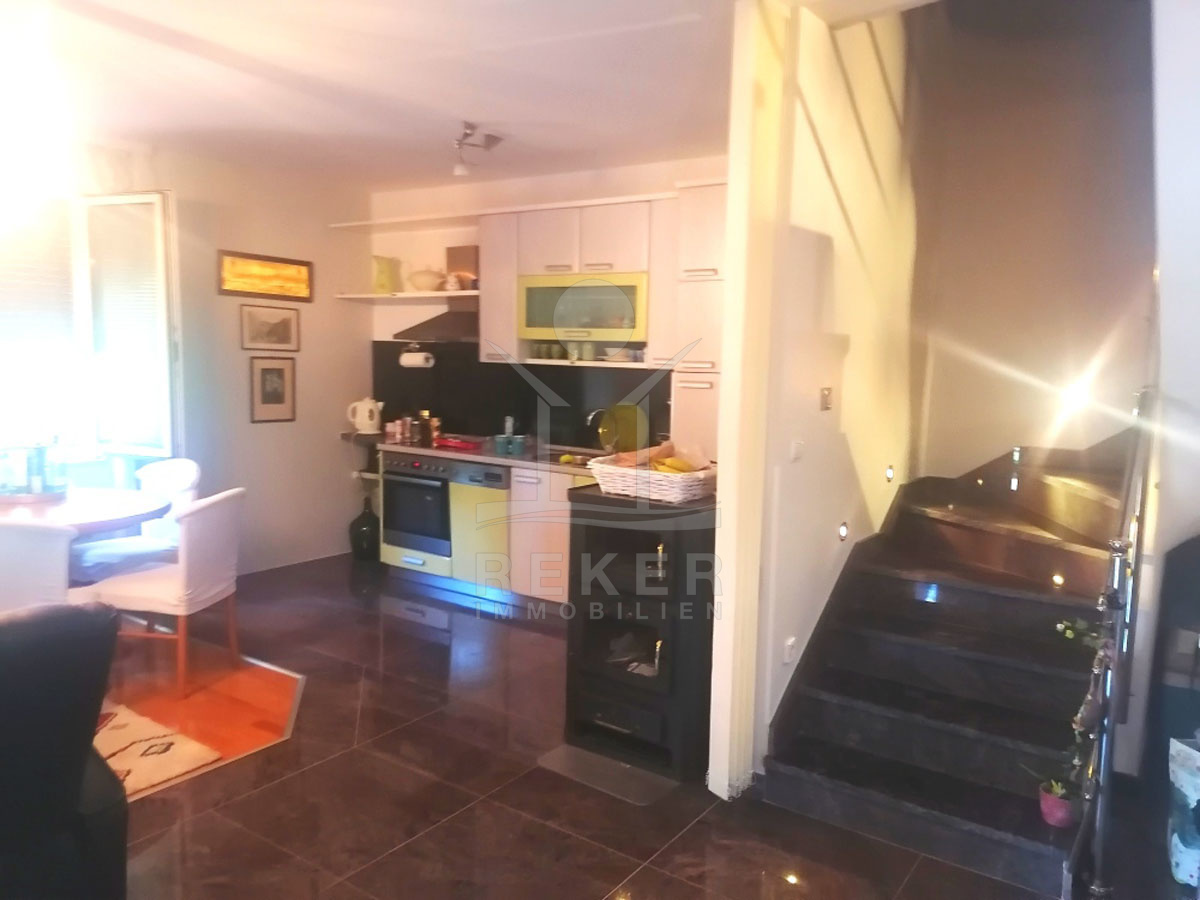 Das Anwesen auf einem 299 m² großen Grundstück bietet eine friedliche Umgebung auf einem malerischen Hügel, die dem Anwesen viel Charme und Privatsphäre verleiht. Die Erreichbarkeit mit dem Auto ist unkompliziert, bedeutsam ist die Garage mit elektronischem Tor, die zusätzlichen Komfort bietet. Darüber hinaus gibt es in der Nähe einen öffentlichen Parkplatz, auf dem mehrere Autos abgestellt werden können, was für Gäste oder zusätzliche Familienfahrzeuge ideal ist. Mit einer Wohnfläche von 174 m² erstreckt sich das Haus über 2 Etagen, und das Herzstück ist der nach Osten ausgerichtete Innenhof mit Garten, der eine perfekte Oase der Ruhe darstellt.