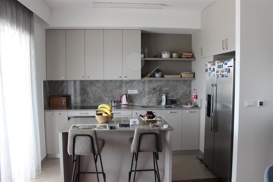 Im Erdgeschoss befindet sich eine komplett modern eingerichtete 80 m² große Wohnung mit 2 Schlafzimmern, 2 Badezimmern, einem Wohn- und Esszimmer sowie einer Küche. Von der Küche aus gelangen Sie auf einen geschlossenen Balkon mit Zugang zur Liegewiese und zum Schwimmbad.
