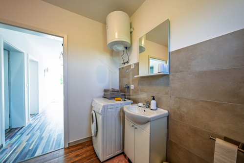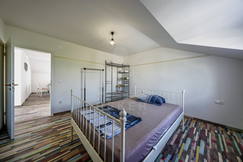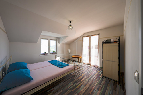 Das Haus selbst ist klug aufgeteilt: zwei Wohneinheiten, zwei Eingänge, zwei Etagen. Ideal für große Familien oder Freunde, die zusammen investieren. Unten wohnen: Wohnküche, zwei Schlafzimmer, Bad, Abstellraum – und direkter Zugang zur Terrasse. Oben leben: zwei Schlafzimmer, Bad, Wohnküche – dazu ein richtig großer Balkon. Auch dieser nach Südwesten. Licht, Weite, Sonne – bis in den Abend. Jede Einheit funktioniert für sich. Beide zusammen ergeben ein Zuhause mit vielen Möglichkeiten.
