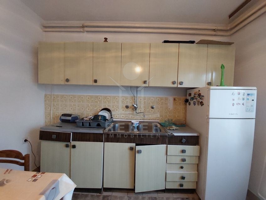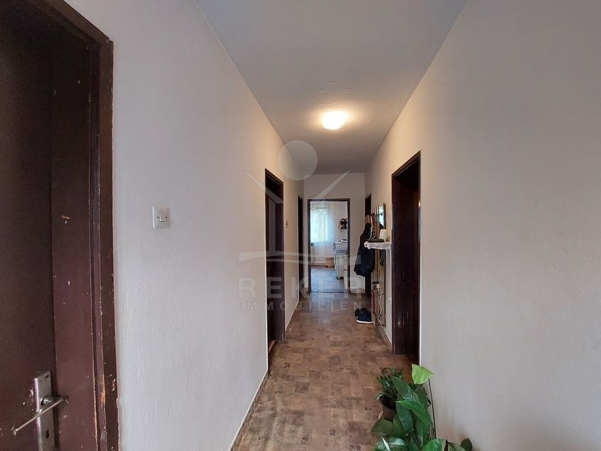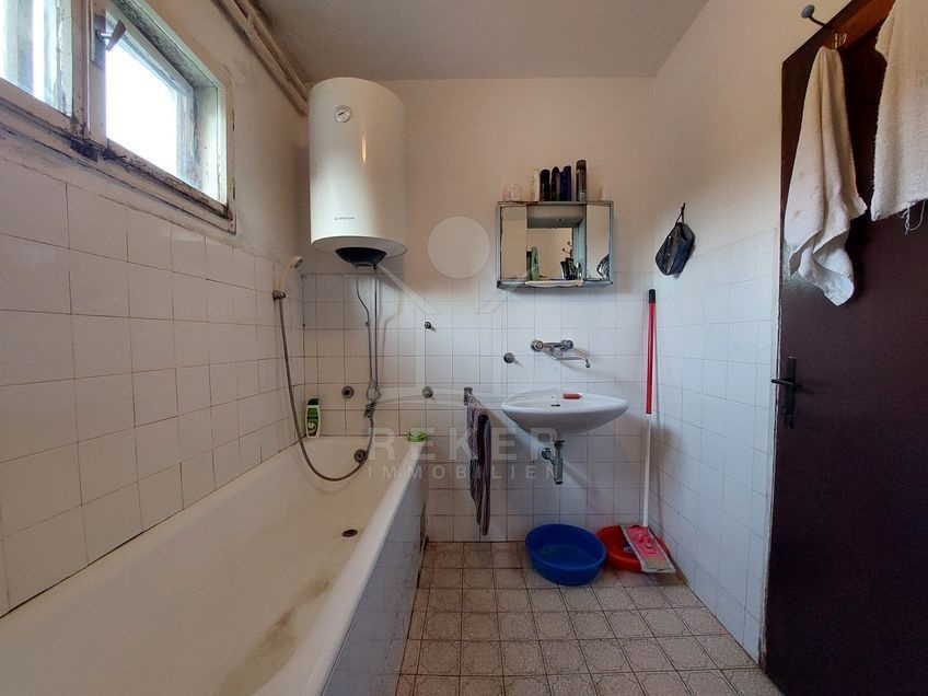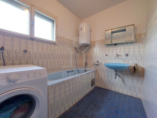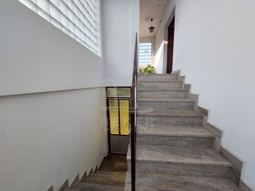 Eine Marmortreppe führt Sie ein Stockwerk höher, wo Sie einen Flur, 2 Schlafzimmer, eine Küche mit Platz für einen Essbereich, eine Tür zum Dachboden und ein Badezimmer mit Badewanne finden.