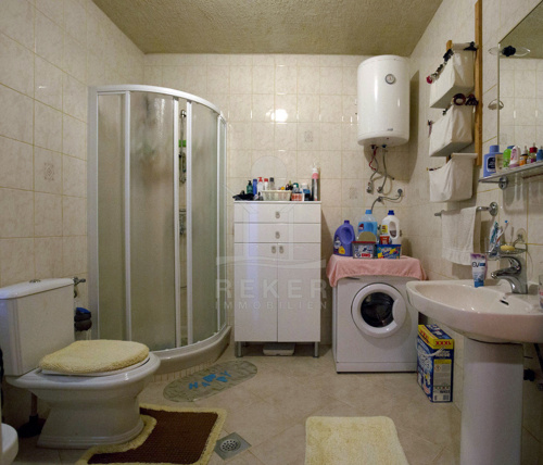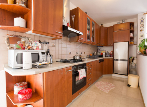 In der Erdgeschoss-Wohnung finden Sie ein Wohnzimmer mit offener Küche, Theke und Essplatz, 2 Schlafzimmer und 2 Badezimmer. Das Haus ist klimatisiert und durch eine zentrale Fußbodenheizung bereichert.