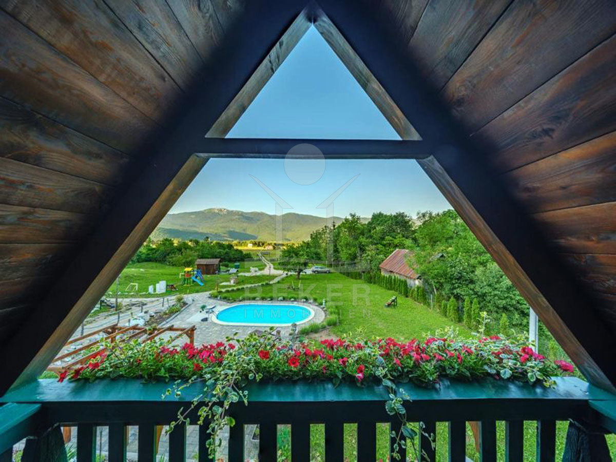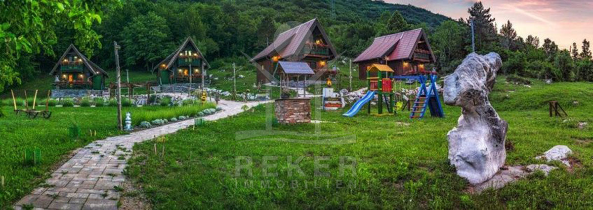 Die Anlage mit Holzhäusern befindet sich in der idyllischen Umgebung von Plitvička Jezera und bietet ein hervorragendes Erlebnis inmitten der Natur. Eingebettet in die malerischen Landschaften Kroatiens, ist Vranovača eine wahre Oase der Ruhe und der perfekte Ort für Erholungssuchende. Die Nähe zum weltbekannten Nationalpark Plitvicer Seen, der ganzjährig zahlreiche Touristen anzieht, garantiert einen stetigen Besucherstrom und bietet die ideale Gelegenheit für eine erfolgreiche Investition. Korenica, die benachbarte Stadt, ergänzt die Lage mit wichtigen Annehmlichkeiten und einer lebhaften Atmosphäre.