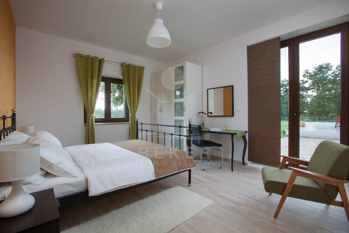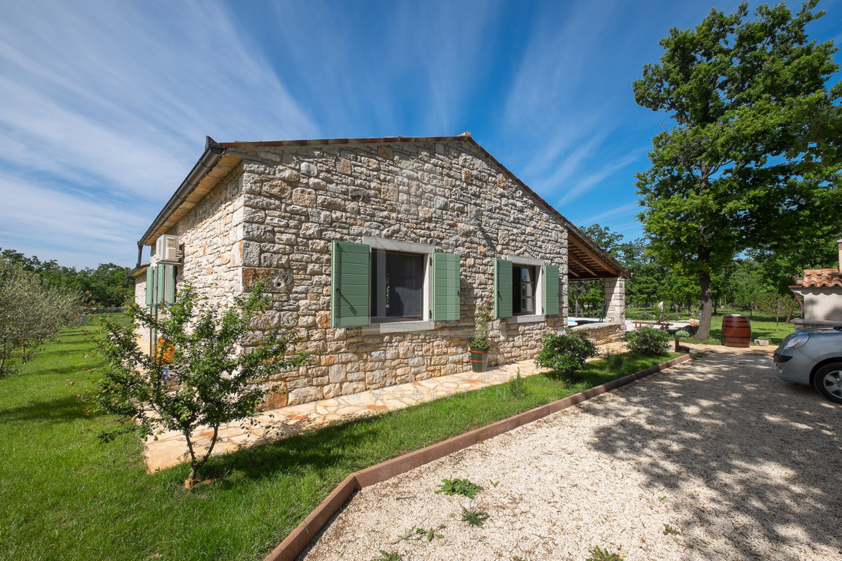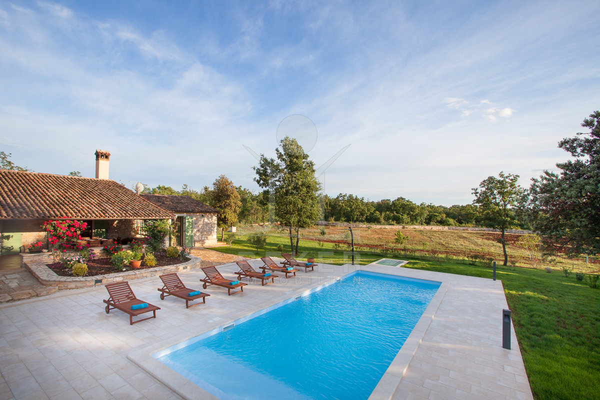 Das Steinhaus selbst wurde im Jahr 2009 an der Stelle des ehemaligen Landhauses errichtet und im Jahr 2015 renoviert. Sie erstreckt sich über eine Ebene und bietet eine Wohnfläche von 155 m². Das Gebäude strahlt den Charme und die Schönheit der traditionellen istrischen Architektur aus, kombiniert mit modernem Komfort.