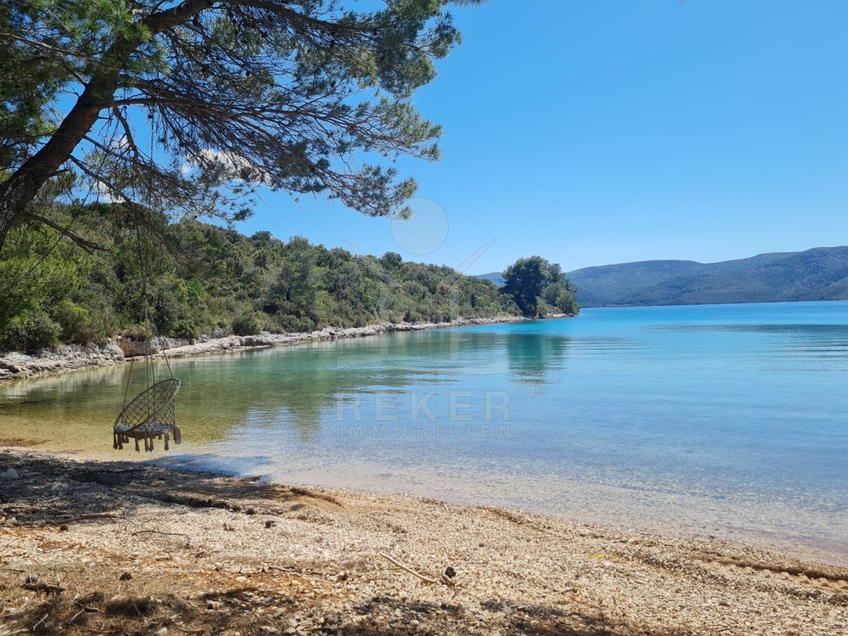 Südseite der Insel Hvar, nur wenige Kilometer von Stari Grad entfernt – und trotzdem in absoluter Ruhe. Dieses Grundstück liegt in einer geschützten Bucht, umgeben von mediterranem Grün. Die Zufahrt erfolgt über eine kleine Straße, das Gelände selbst ist leicht terrassiert und gut zugänglich. Mit rund 3.000 Quadratmetern Fläche bietet es viel Platz für individuelle Ideen. Ein Highlight: der rund 35 Meter lange Privatstrand direkt am Grundstück. Der Blick aufs türkisfarbene Wasser ist frei und unverbaubar.