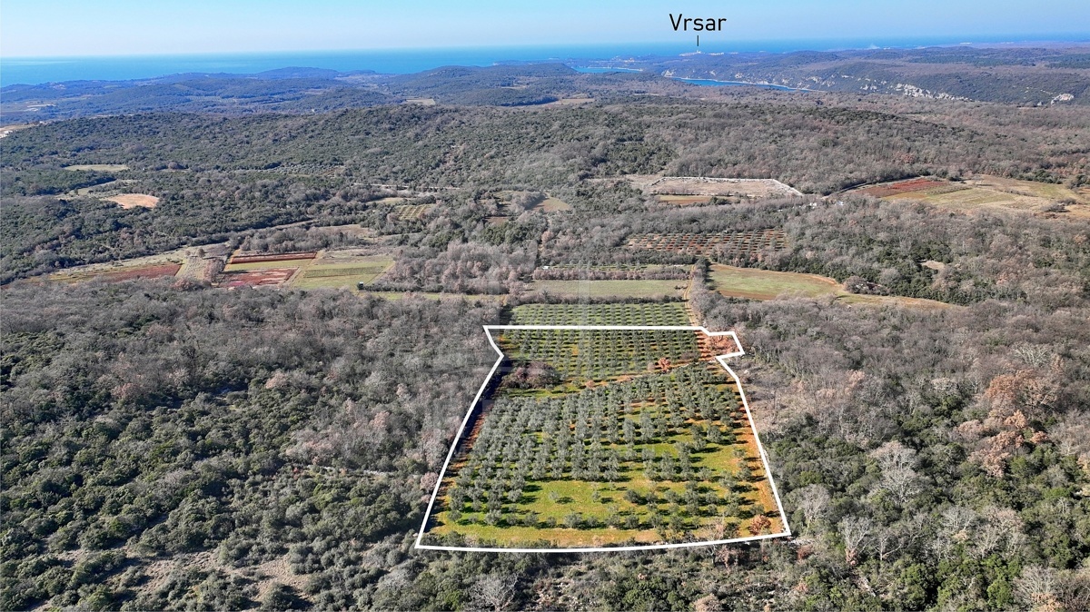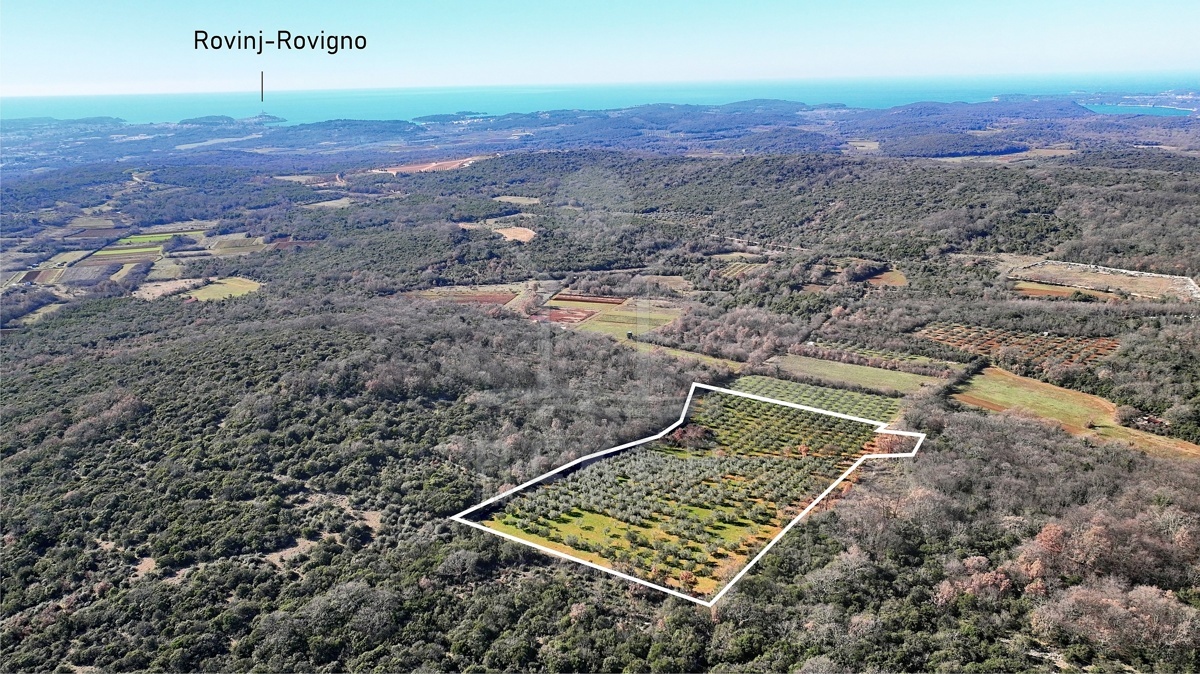 Sagenhafte 18.995 m² Land könnten schon bald Ihnen gehören! Auf einem Hügel, in einer ruhigen und milden Umgebung zwischen Rovinj, Rovinjsko Selo und der Lim Bucht gelegen, finden Sie diesen gepflegten Olivenhain. Vom höher gelegenen Teil des Grundstücks können Sie das malerische Meer bewundern.