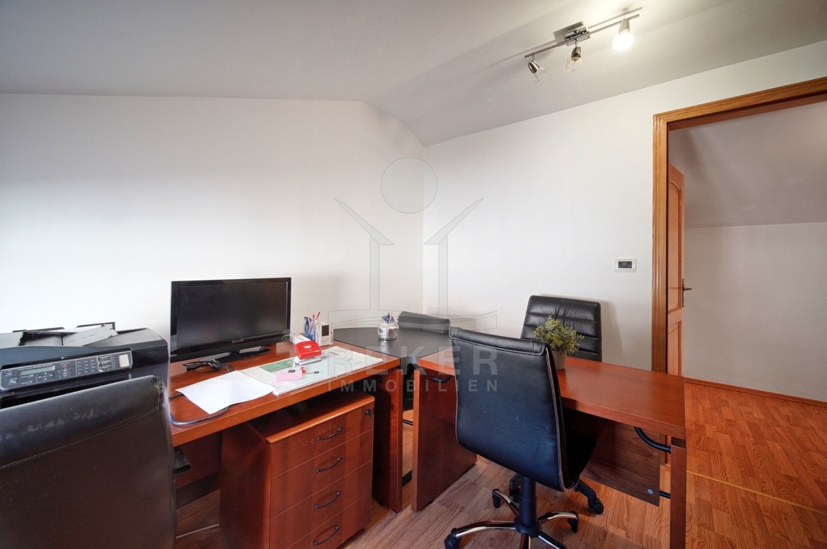 Im Obergeschoss finden Sie 2 gemütliche Schlafzimmer, ein Arbeitszimmer und ein Badezimmer rundet die Etage ab. Hier können Sie sich in Ihren eigenen Rückzugsorten entspannen und erholen.