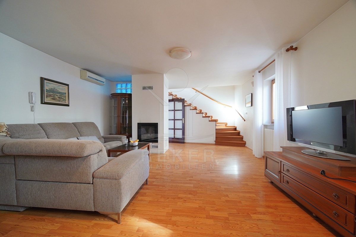 Die Wohnung wird mit Klimaanlage geliefert und ist voll möbliert, was Ihnen einen sofortigen Einzug und Komfort ermöglicht. Der Wohnbereich erstreckt sich über 2 Etagen und bietet ein komfortables und stilvolles Wohnerlebnis. Hier erwartet Sie ein geräumiges Wohnzimmer, eine Küche und ein Esszimmer, die perfekt zum Entspannen und Unterhalten geeignet, ein Schlafzimmer und ein Badezimmer. Eine großzügige Terrasse lädt zum Genießen der frischen Luft ein. Außerdem gibt es praktische Abstellräume für zusätzlichen Stauraum.