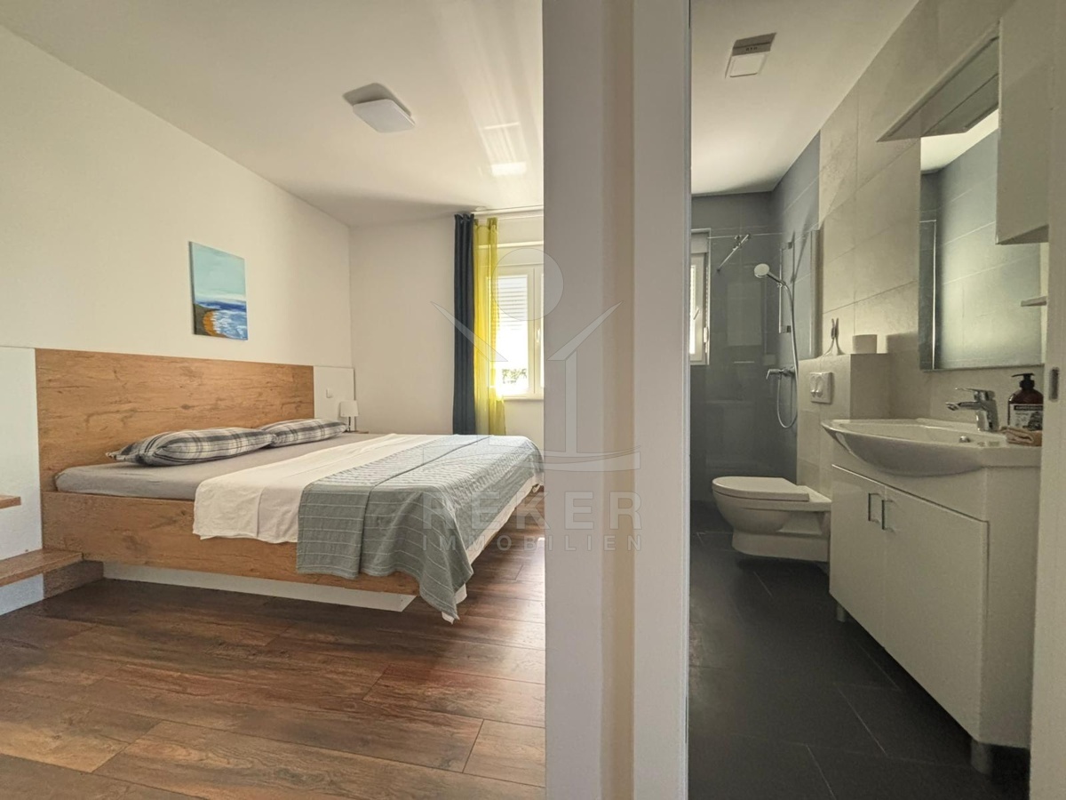 In Caska, einer der schönsten Buchten der Adria, wartet ein modernes Haus auf Sie. Zum feinsandigen Strand gehen Sie nur wenige Minuten. 200 bis 300 Meter trennen Sie vom Meer. Auch Novalja und der bekannte Strand Zrće sind schnell erreicht. Direkt am Haus stehen Garage und Stellplätze zur Verfügung, bequem für Sie, Ihre Familie und Gäste.