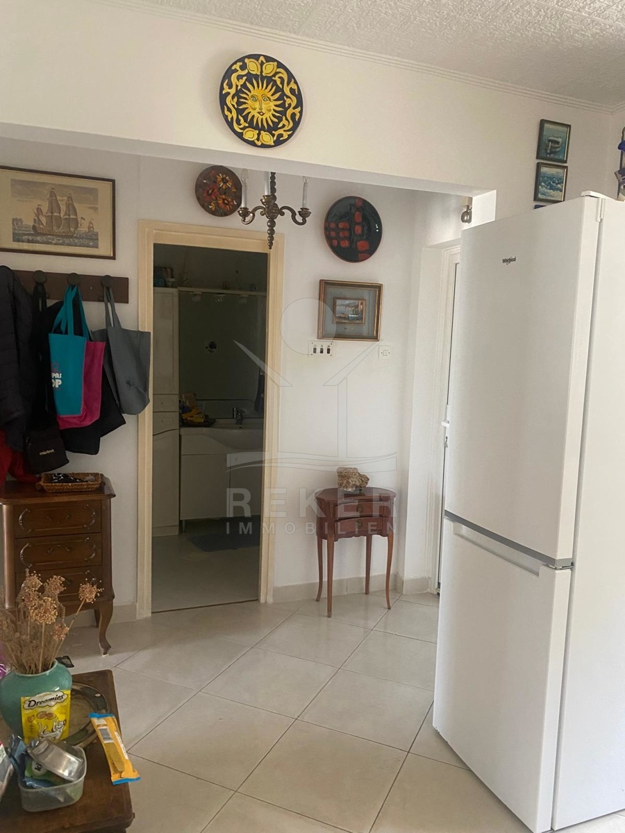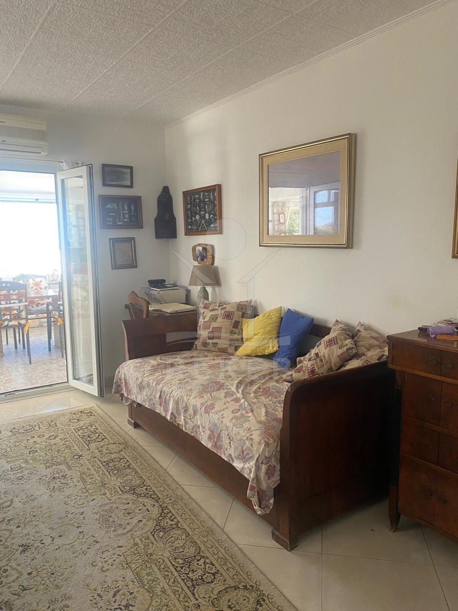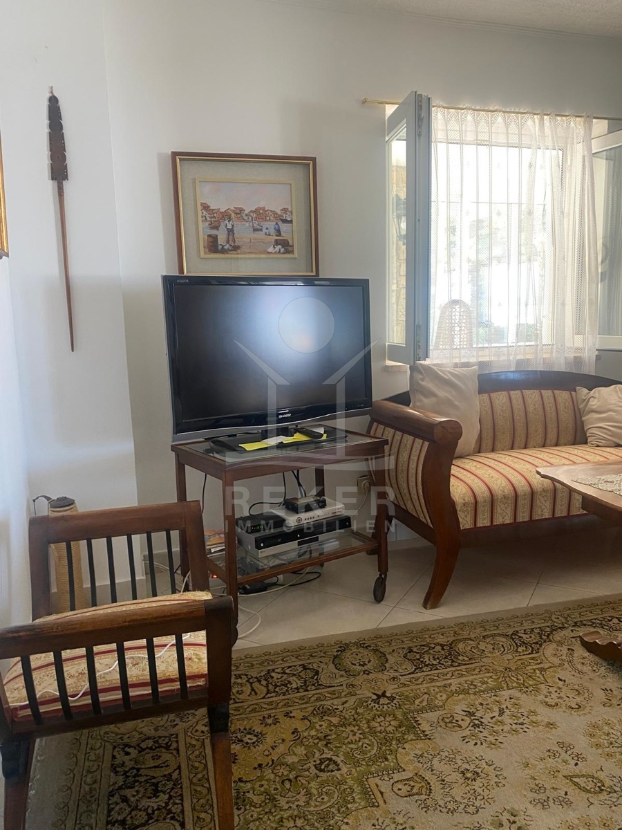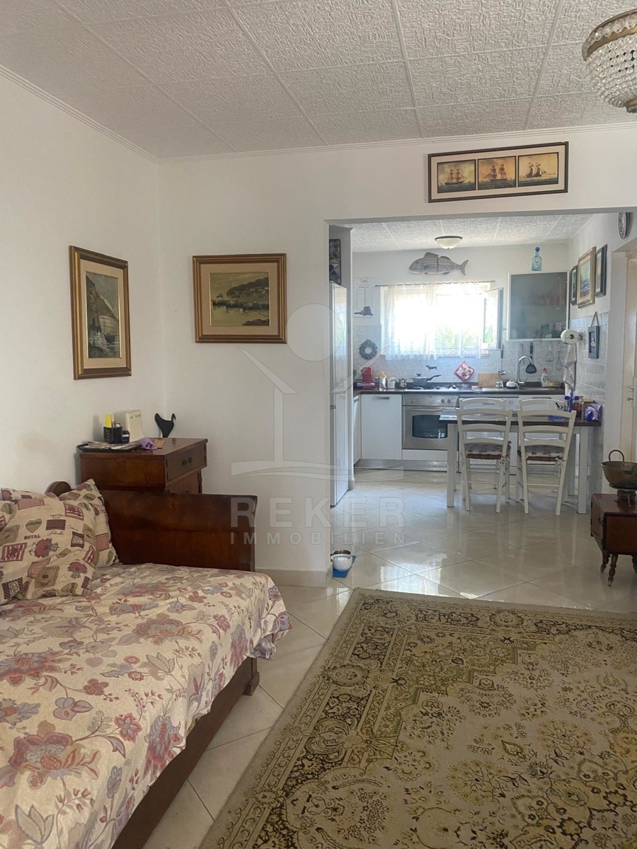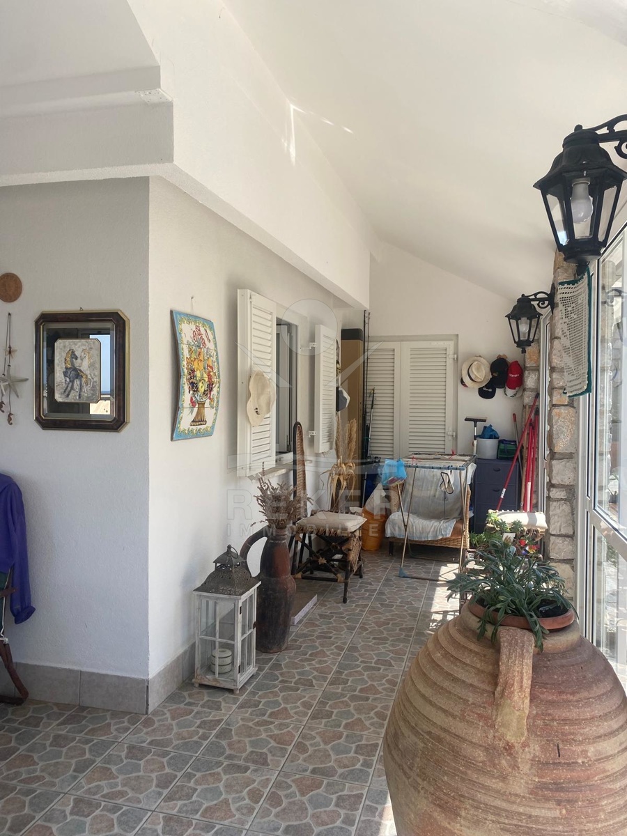 Im Inneren erwarten Sie 85 m² Wohnfläche auf einer Ebene. Der offene Wohn-, Ess- und Kochbereich geht direkt in die große Veranda über, deren Glasfront komplett geöffnet werden kann. So verbindet sich der Blick auf den Garten mit dem auf das Meer. Zwei Schlafzimmer, ein Bad und ein Flur machen die Aufteilung kompakt und alltagstauglich. Die Ausstattung ist bodenständig, aber besonders: Möbel aus Catania, rund 300 Jahre alt, stilvoll erhalten und im Preis inklusive. Eine Klimaanlage sorgt für angenehmes Raumklima. Im Dachboden lagern einige afrikanische Amphoren und Krüge ... ein Stück Geschichte, das bleibt.
