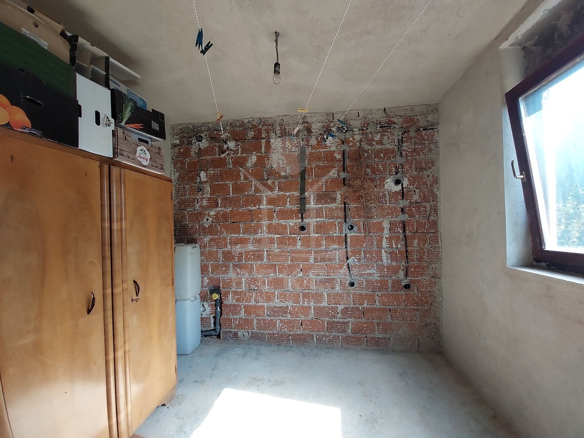 Strom- und Wasseranschluss sind vorhanden. Die Beheizung erfolgt über einen Holzofen, Warmwasser über einen elektrischen Boiler. Die Abwasserentsorgung erfolgt über eine Klärgrube. Holzfenster und Holztüren sind eingebaut, neue Elemente mit Doppelverglasung stehen bereits zum Einbau bereit. Fliesen- und Holzböden prägen die Wohnräume, das Treppenhaus besteht aus Beton. Die Übergabe erfolgt möbliert.