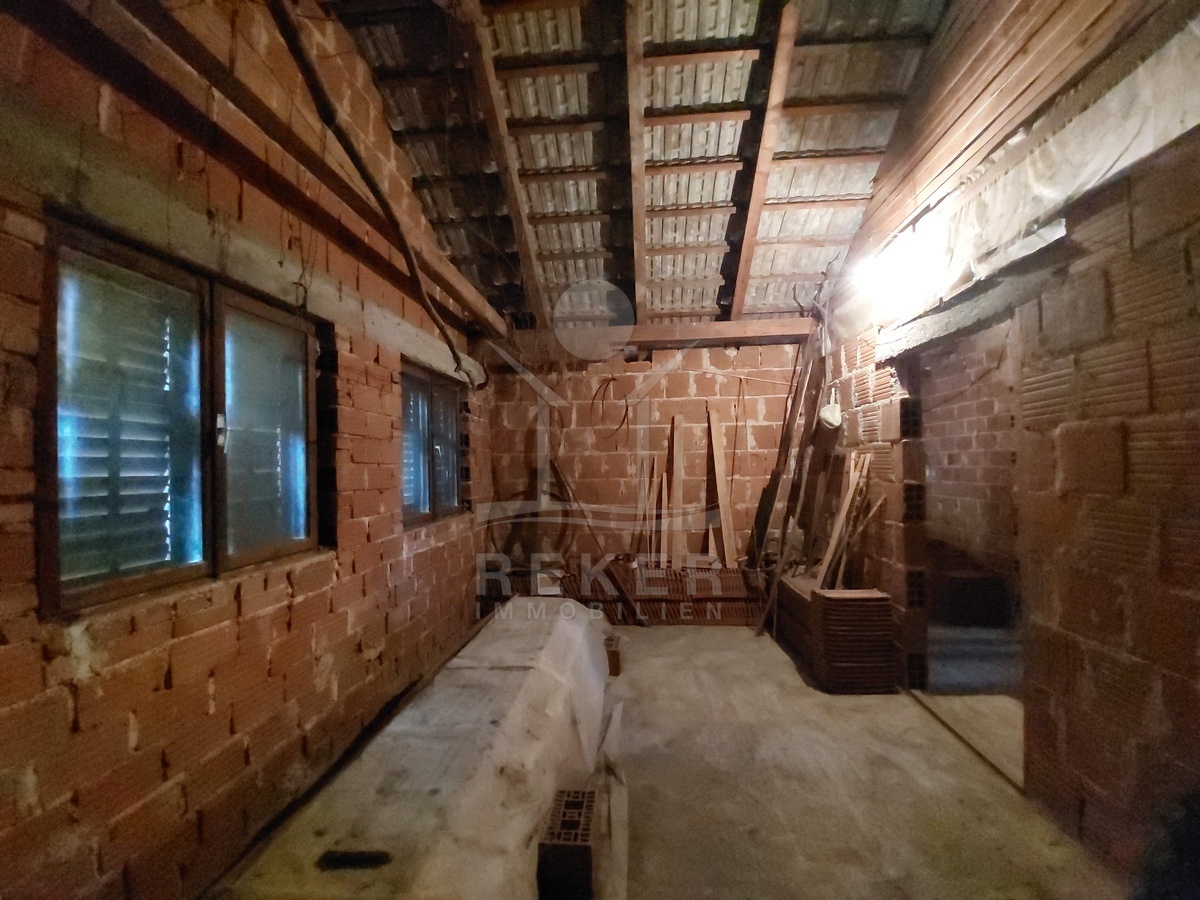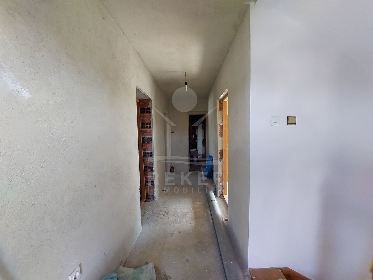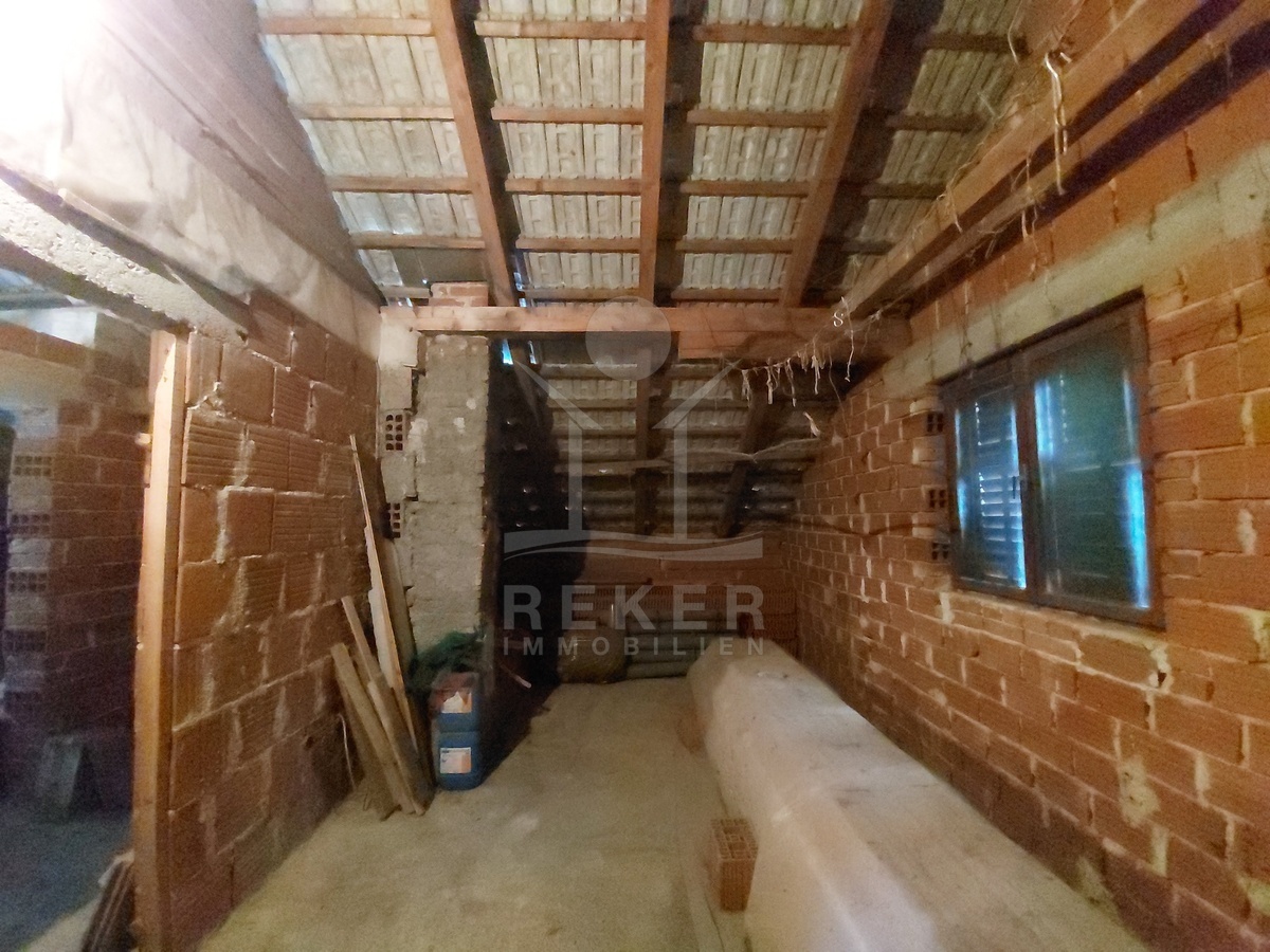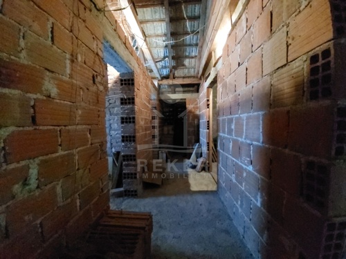 Das Haus wurde 1983 erbaut und bietet auf drei Etagen insgesamt 252 m² Wohnfläche. Im Erdgeschoss befinden sich ein Flur, eine Wohnküche, ein Badezimmer und zwei Schlafzimmer. Über das innere Treppenhaus erreichen Sie den ersten und zweiten Stock. Beide Etagen sind noch nicht ausgebaut, verfügen jedoch über denselben Grundriss. Dadurch eröffnen sich flexible Nutzungsmöglichkeiten. Für eine große Familie oder für drei separate Wohneinheiten. Im zweiten Obergeschoss ergänzt eine kleine Loggia den Wohnraum mit Blick auf die Umgebung.