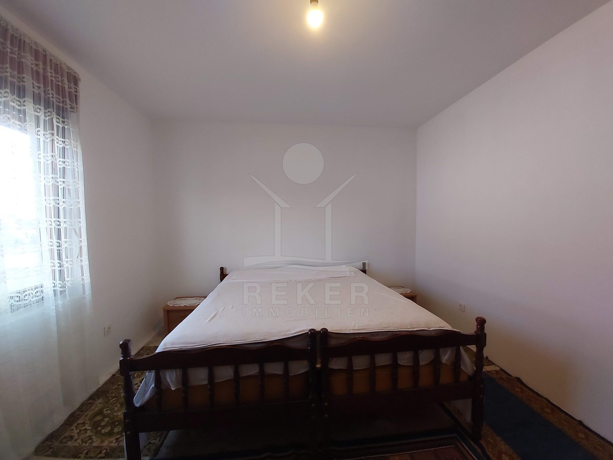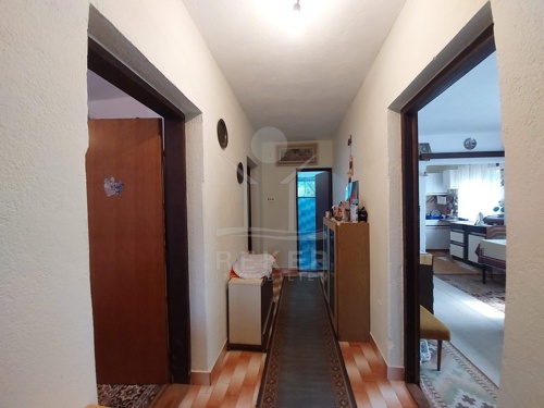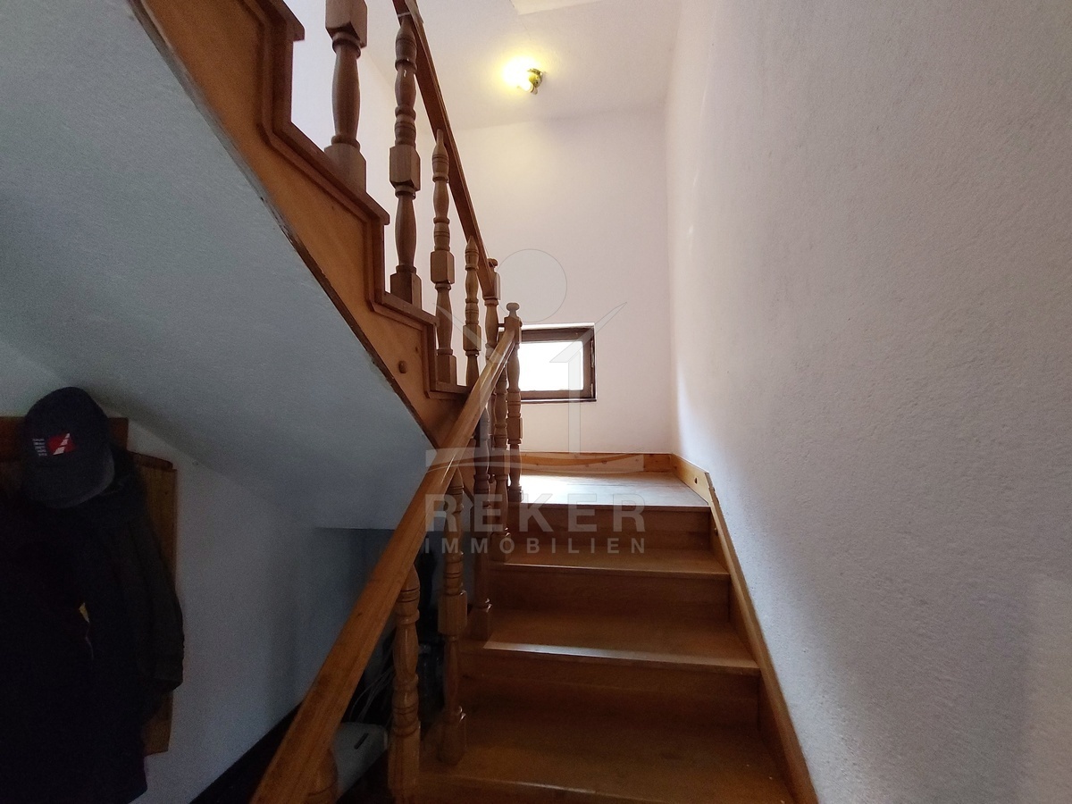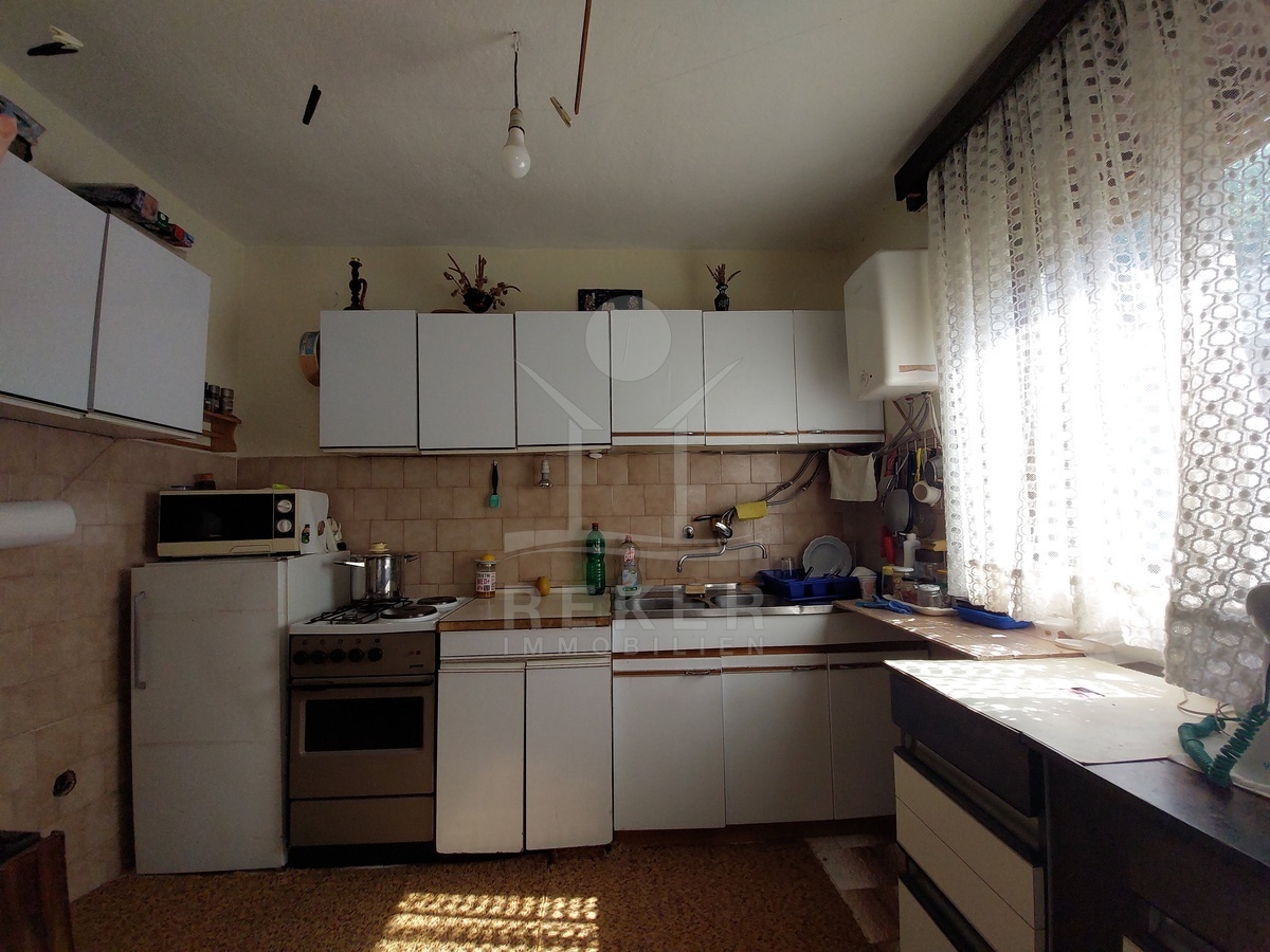 Das Haus wurde 1983 erbaut und bietet auf drei Etagen insgesamt 252 m² Wohnfläche. Im Erdgeschoss befinden sich ein Flur, eine Wohnküche, ein Badezimmer und zwei Schlafzimmer. Über das innere Treppenhaus erreichen Sie den ersten und zweiten Stock. Beide Etagen sind noch nicht ausgebaut, verfügen jedoch über denselben Grundriss. Dadurch eröffnen sich flexible Nutzungsmöglichkeiten. Für eine große Familie oder für drei separate Wohneinheiten. Im zweiten Obergeschoss ergänzt eine kleine Loggia den Wohnraum mit Blick auf die Umgebung.